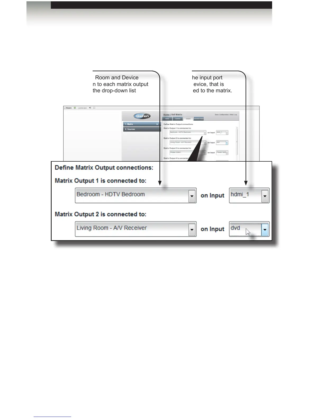 10. Select the outputs and inputs to connect the matrix to each device. The specied