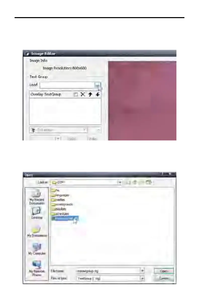 To load a saved TextGroup, click the load button to the left of the Load text eld.