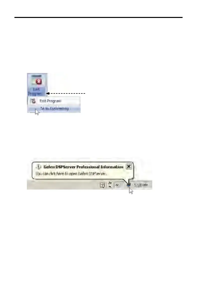 A secondary option exists which will minimizes the DSP Server software to the