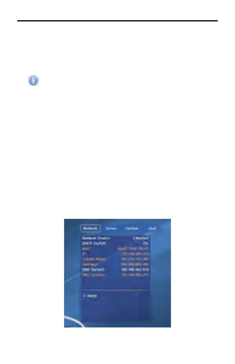 • There are four sections in the Setup screen: Network, Server, System and