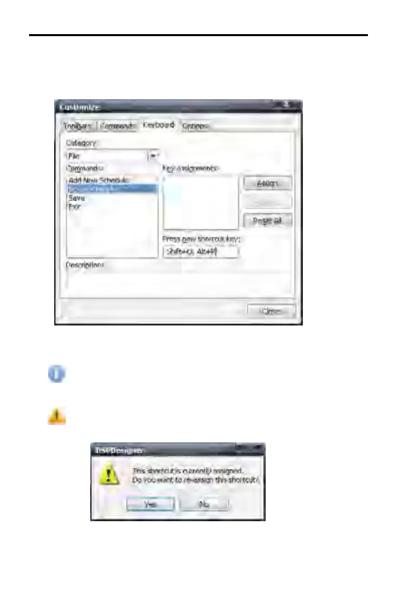 Click Yes to reassign the existing keyboard shortcut with the new shortcut. Click