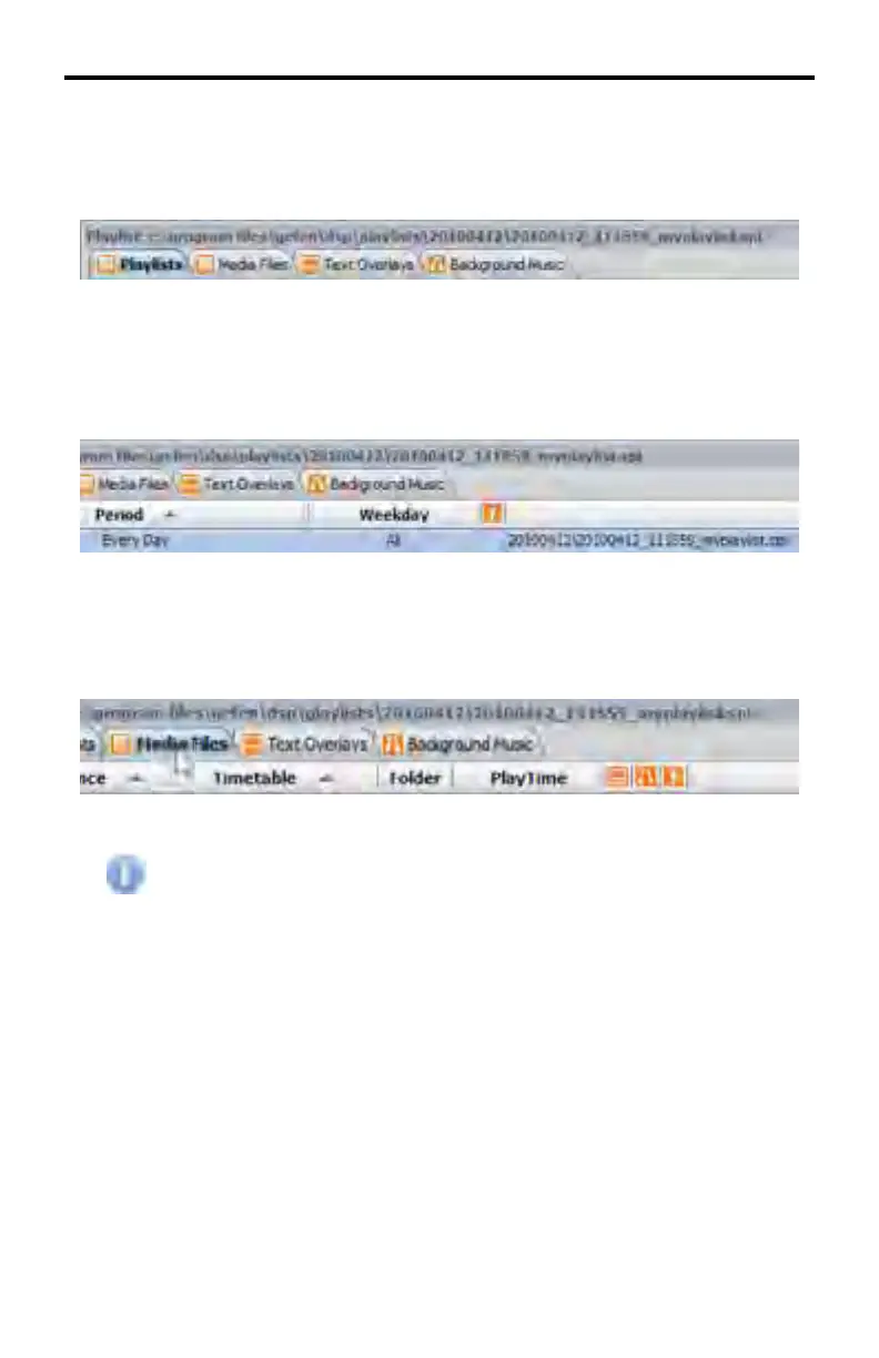 Below the tabs is the Playlist schedule which displays the Playlist fi le along with