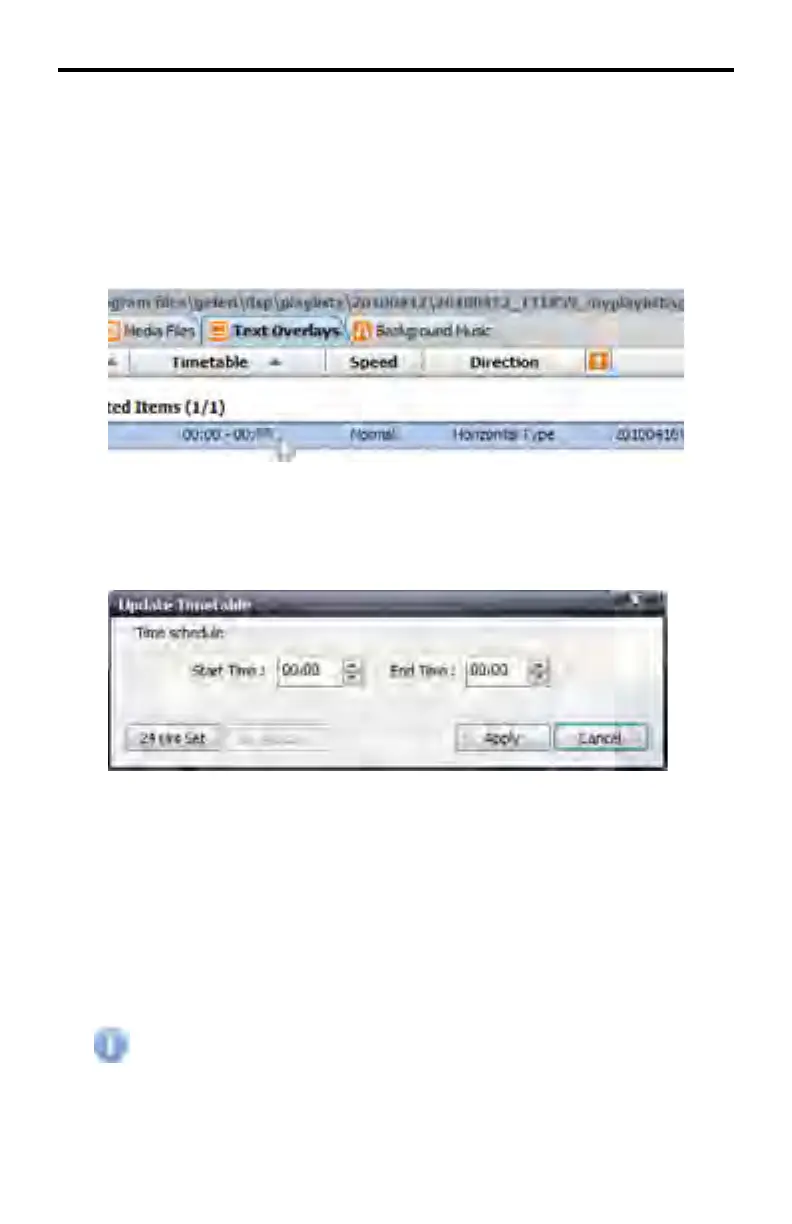 4. If the selected text overlay is intended to play all day, press the 24 Hrs Set