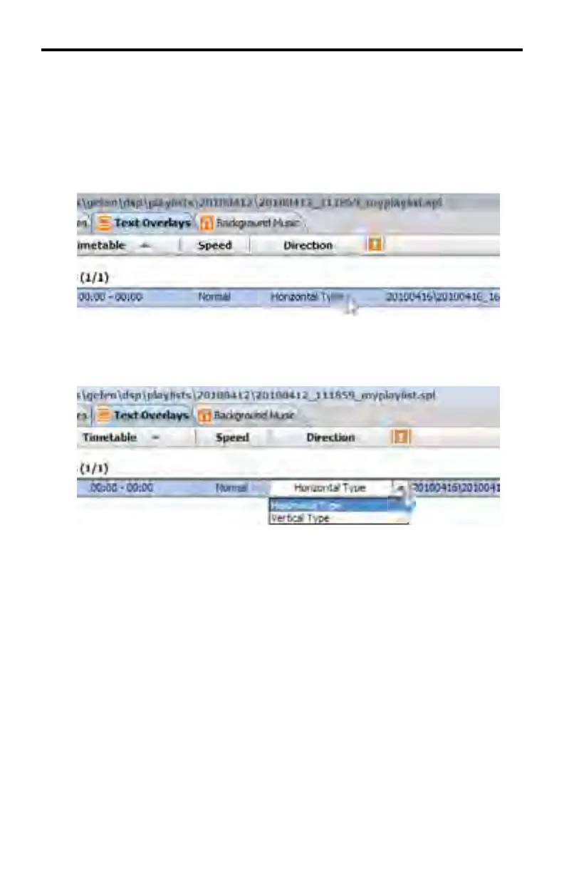 1. Double click on the Direction fi eld of the desired text overlay (by default this