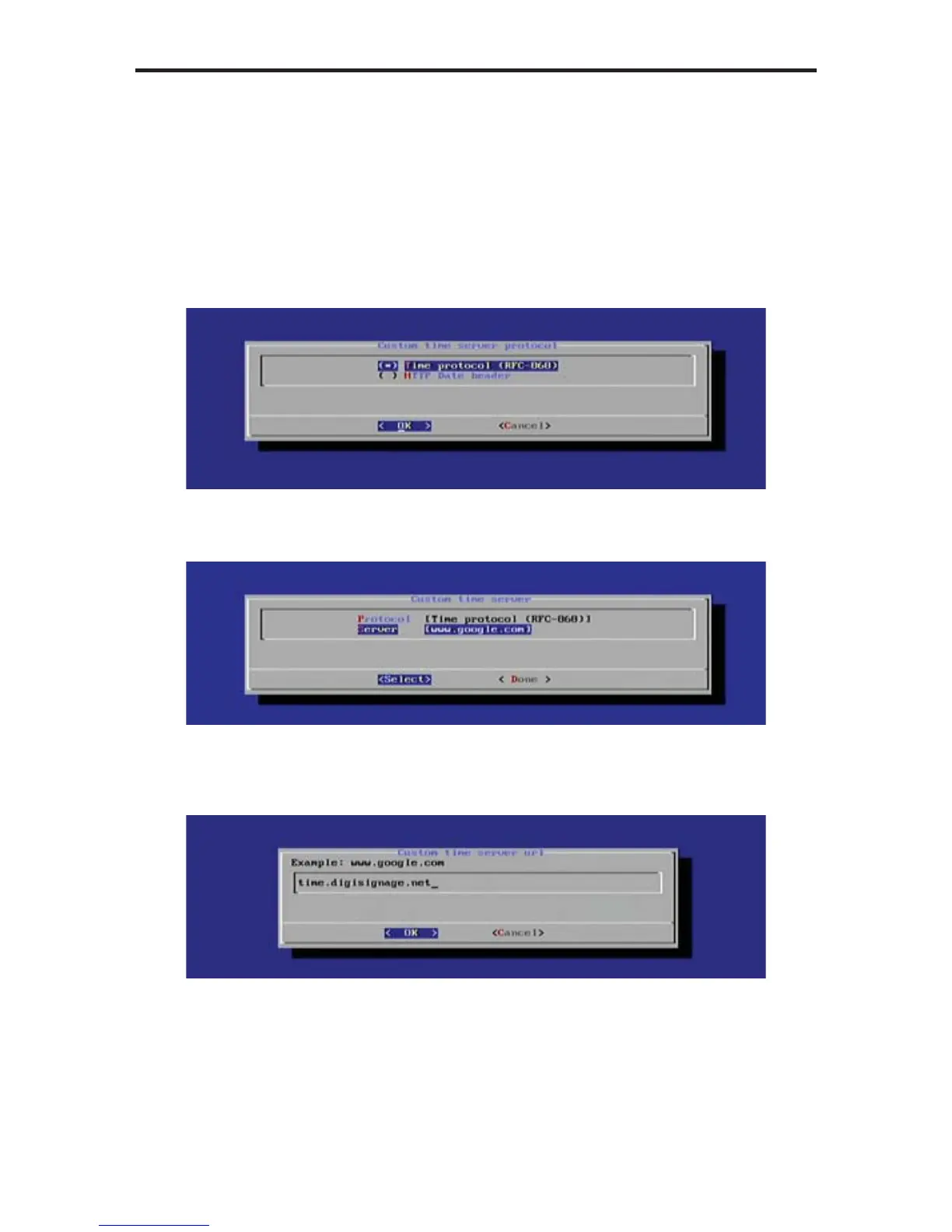 the Enter key to confi rm the changes and return to the Custom Time Server