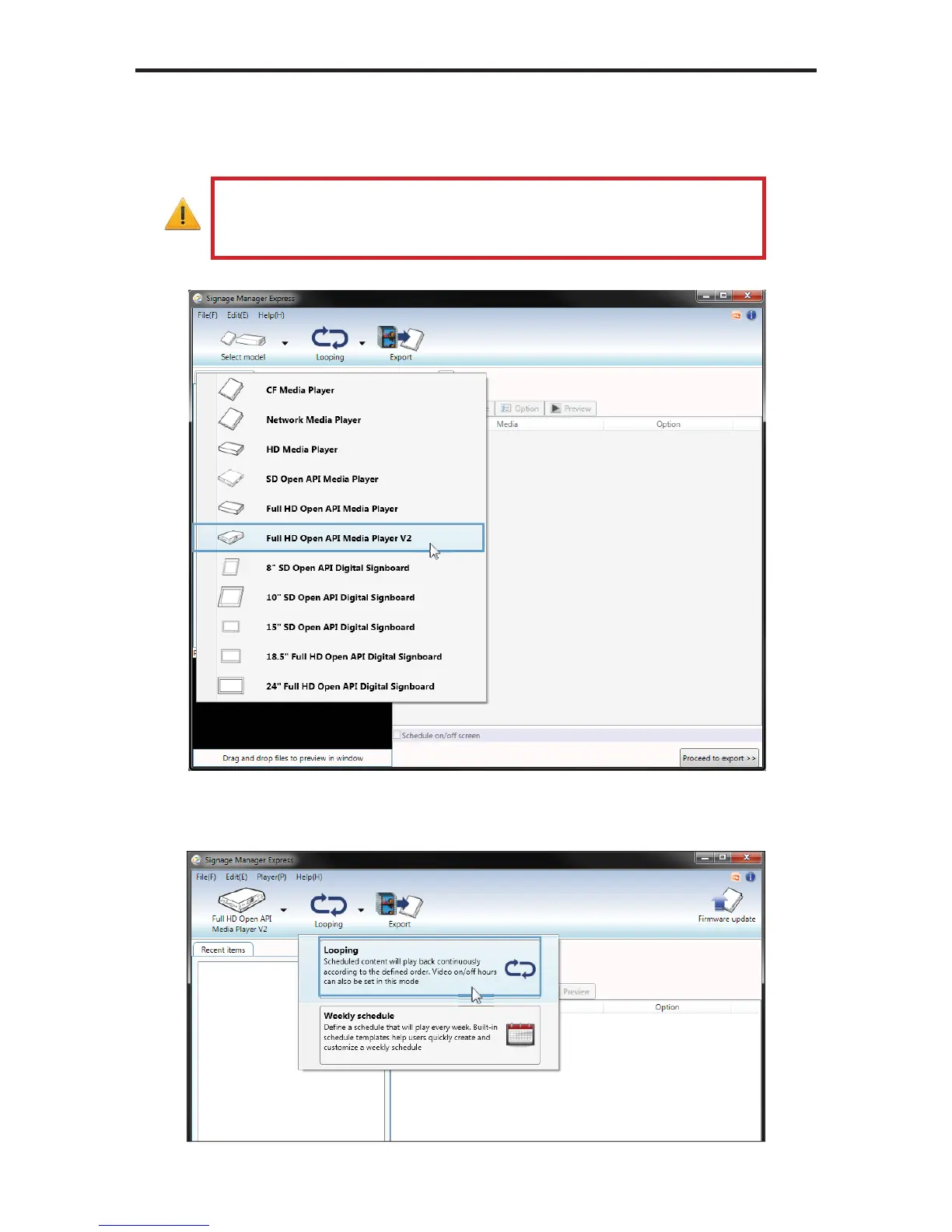 for looping the content or defi ning a schedule. Looping is the default setting.