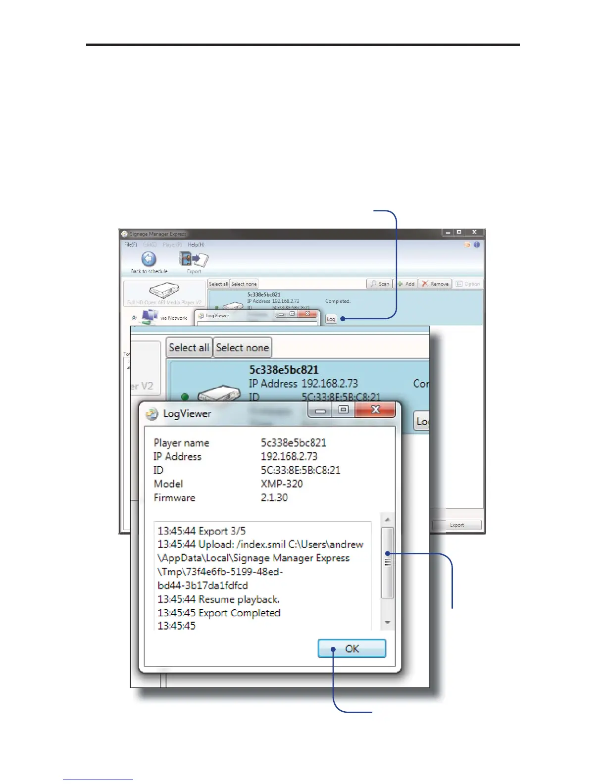 Press the OK button to dismiss the LogViewer dialog.