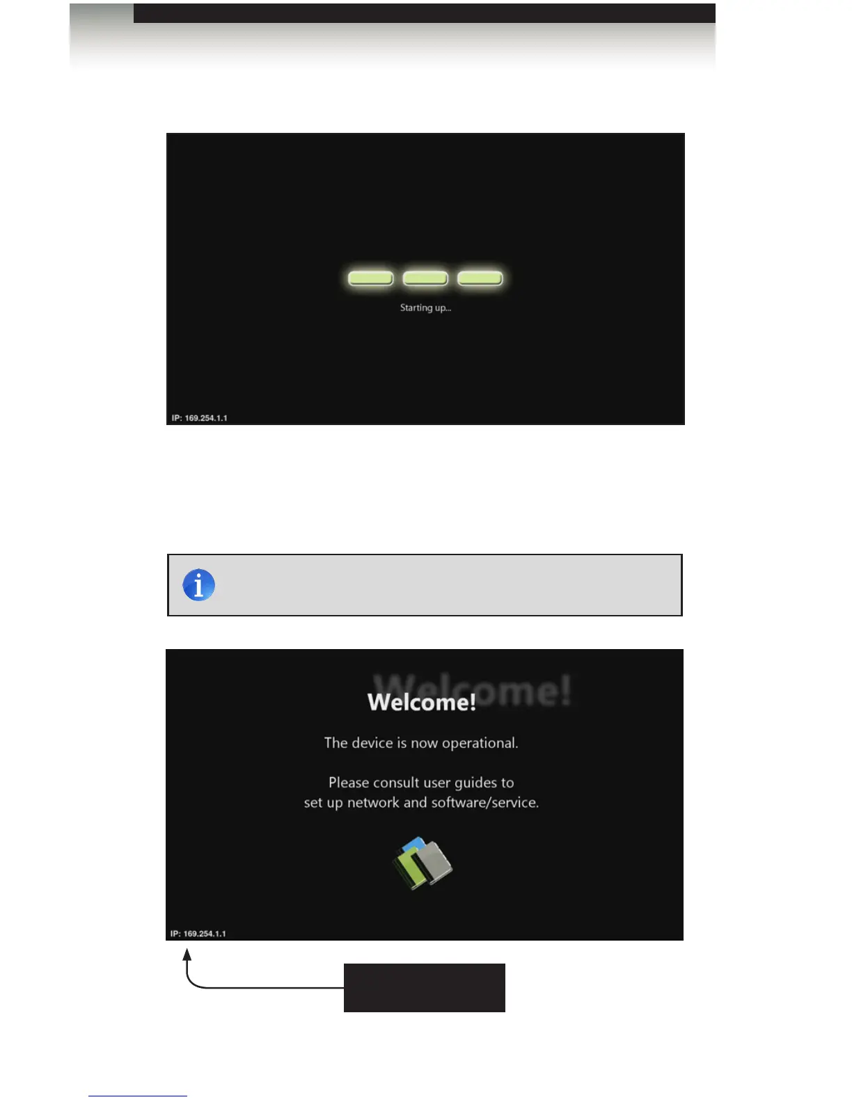 After connecting power to the unit, the following screen will be displayed: