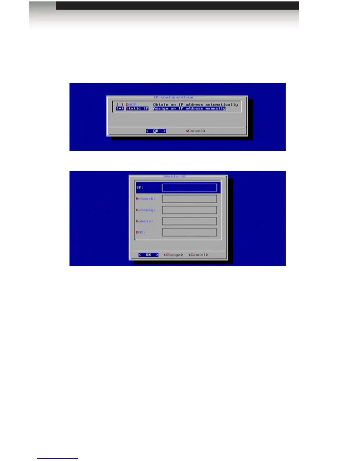 1. Select the Static IP option and press the Spacebar to place an asterisk next to it.