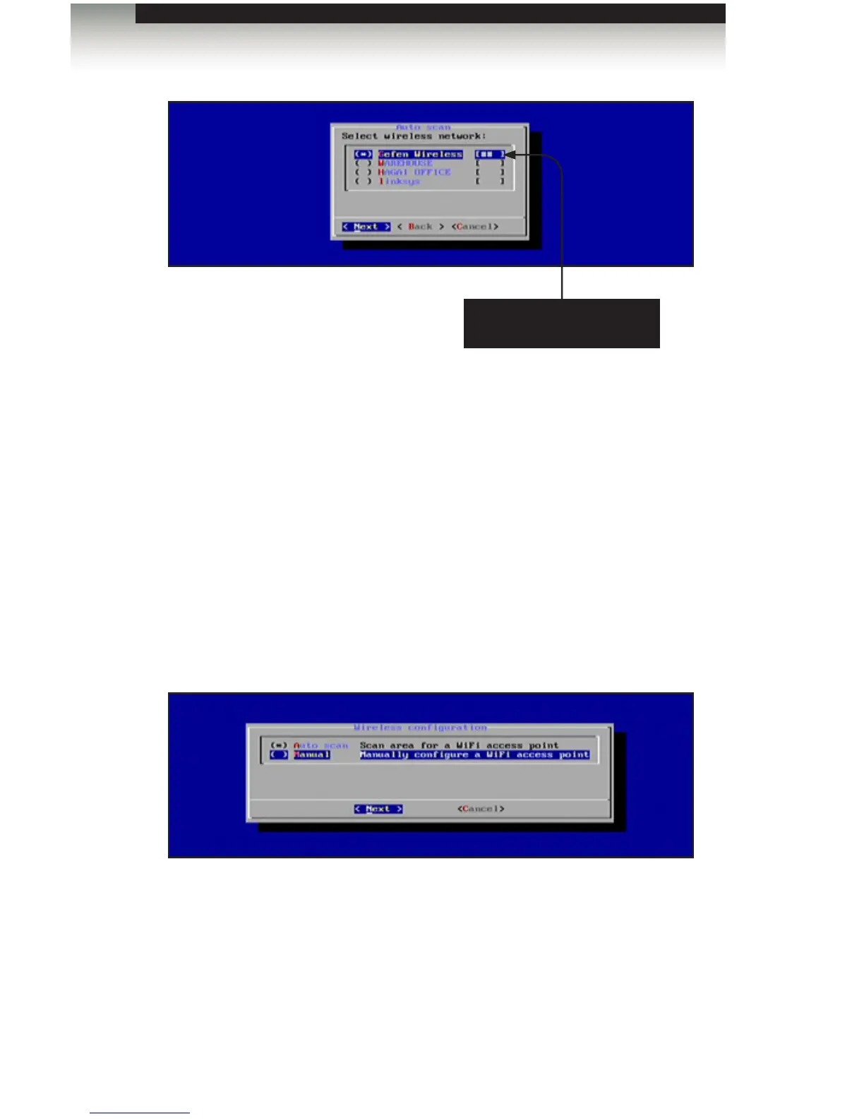 1. Highlight Manual from the Wireless Conguration dialog and press the Enter key to