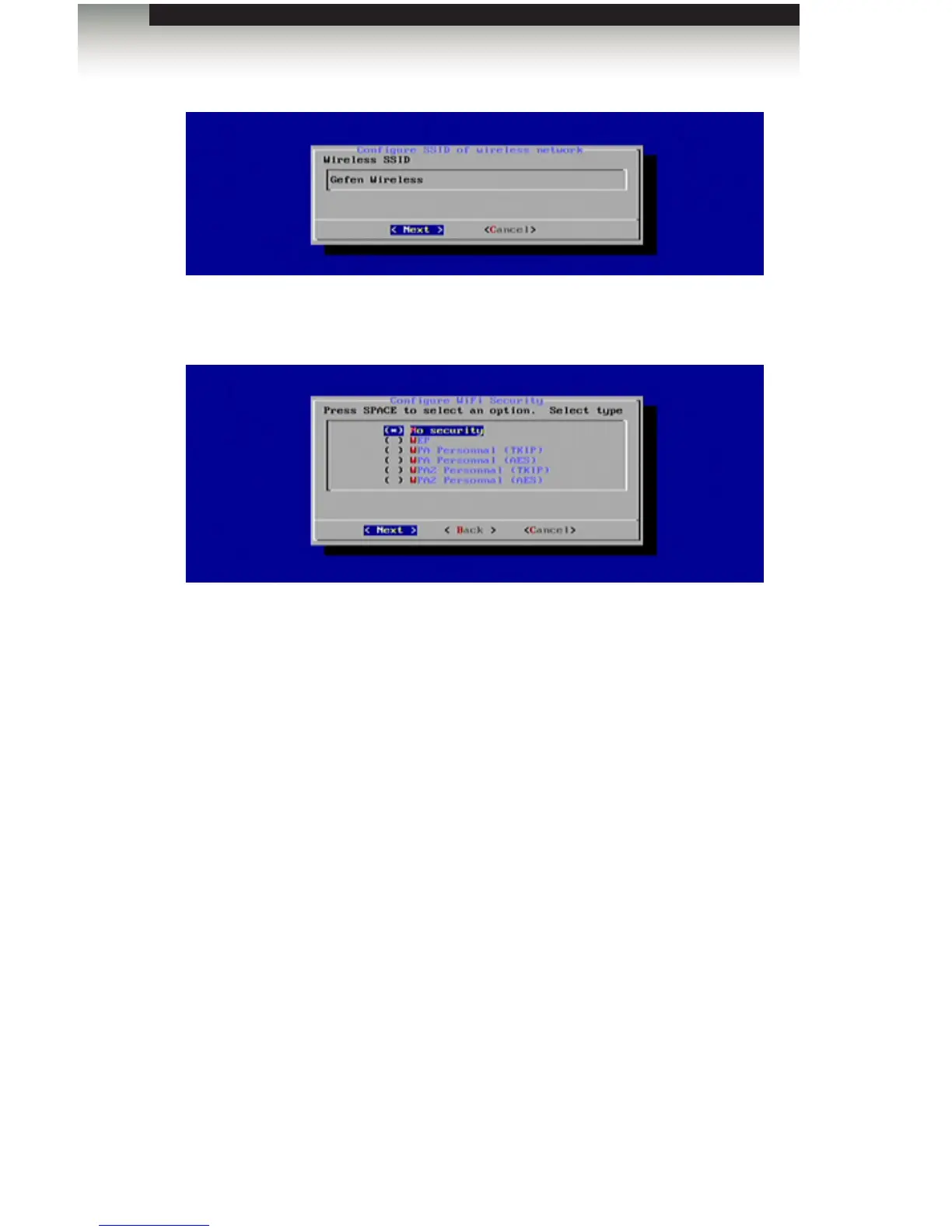 3. Highlight the security option to be used when connecting to the network: