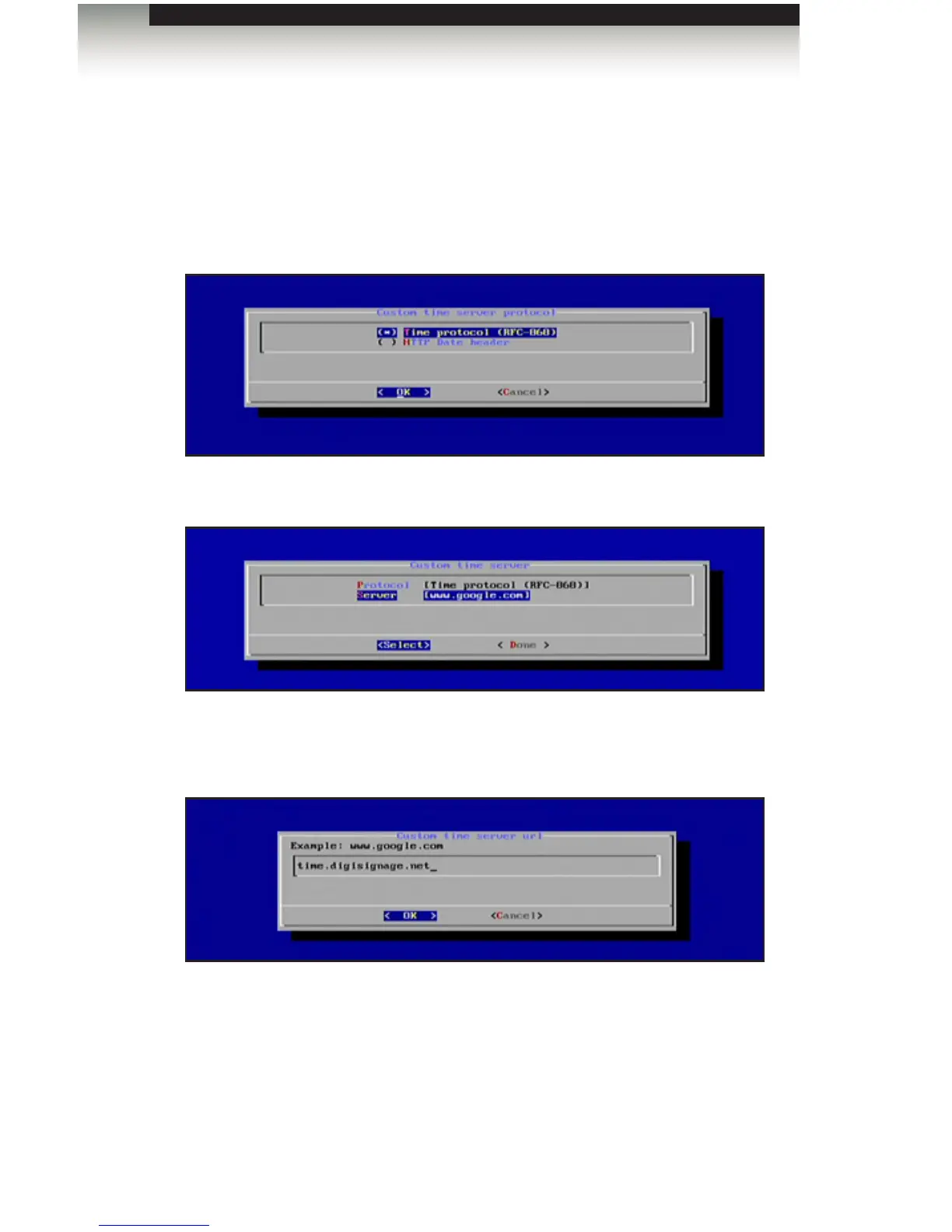 key to conrm the changes and return to the Custom Time Server dialog.