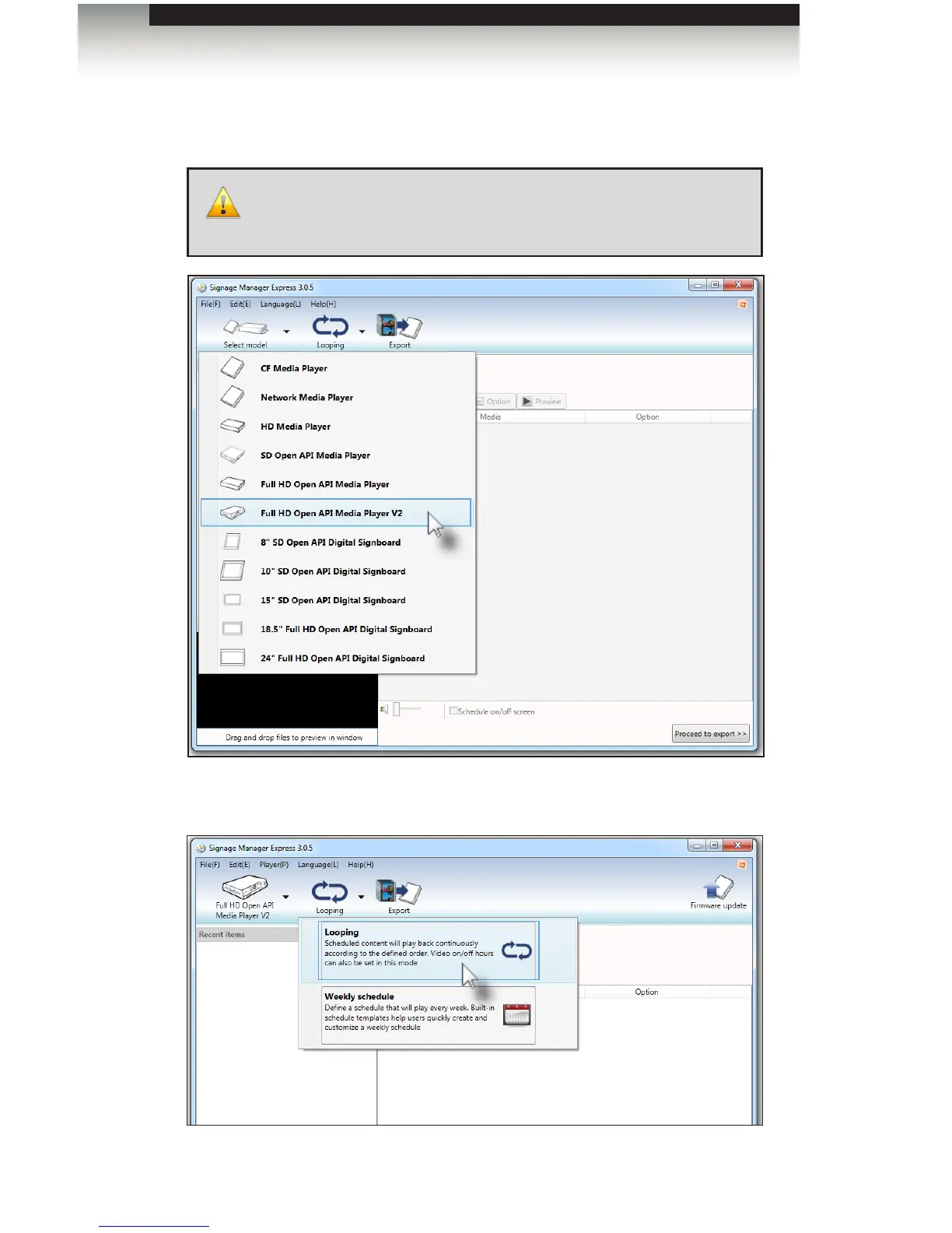 5. Click the Looping icon. The Signage Manager Express provides the option for looping