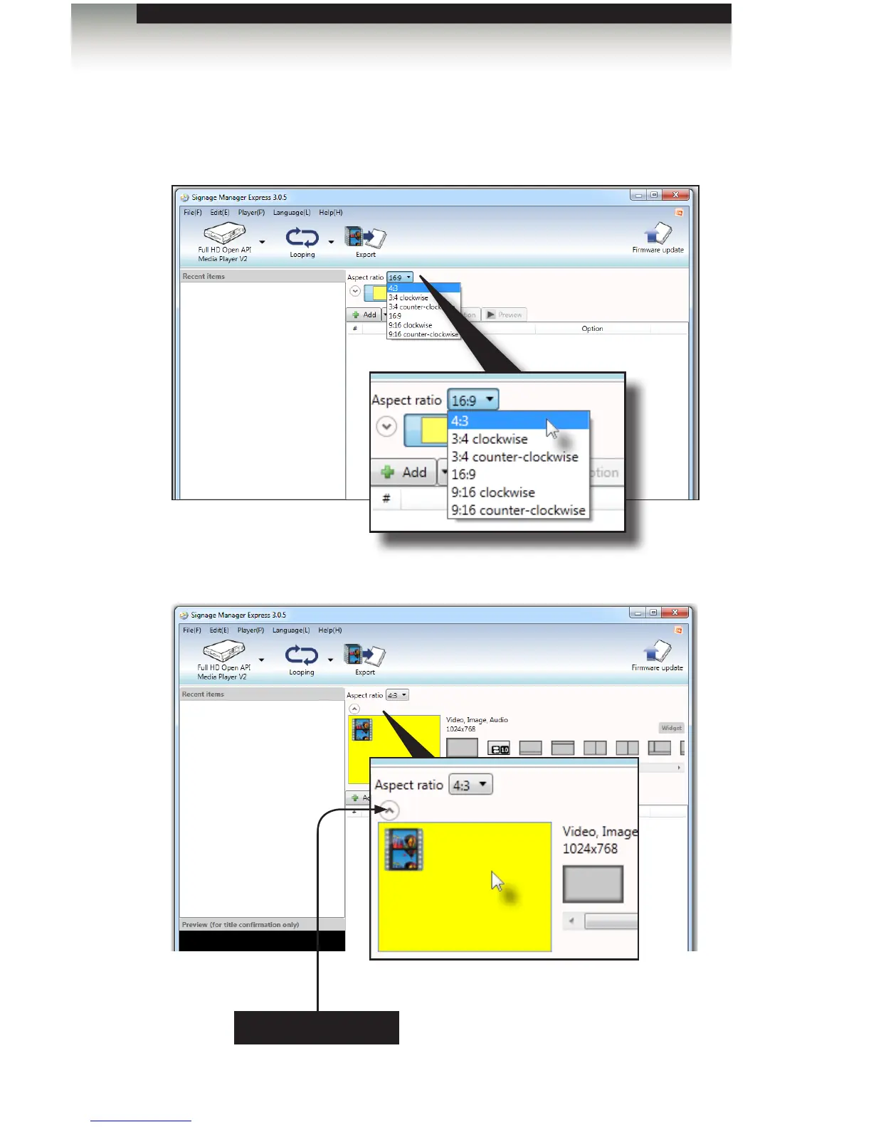6. The Signage Manager Express allows different aspect ratios to be selected.