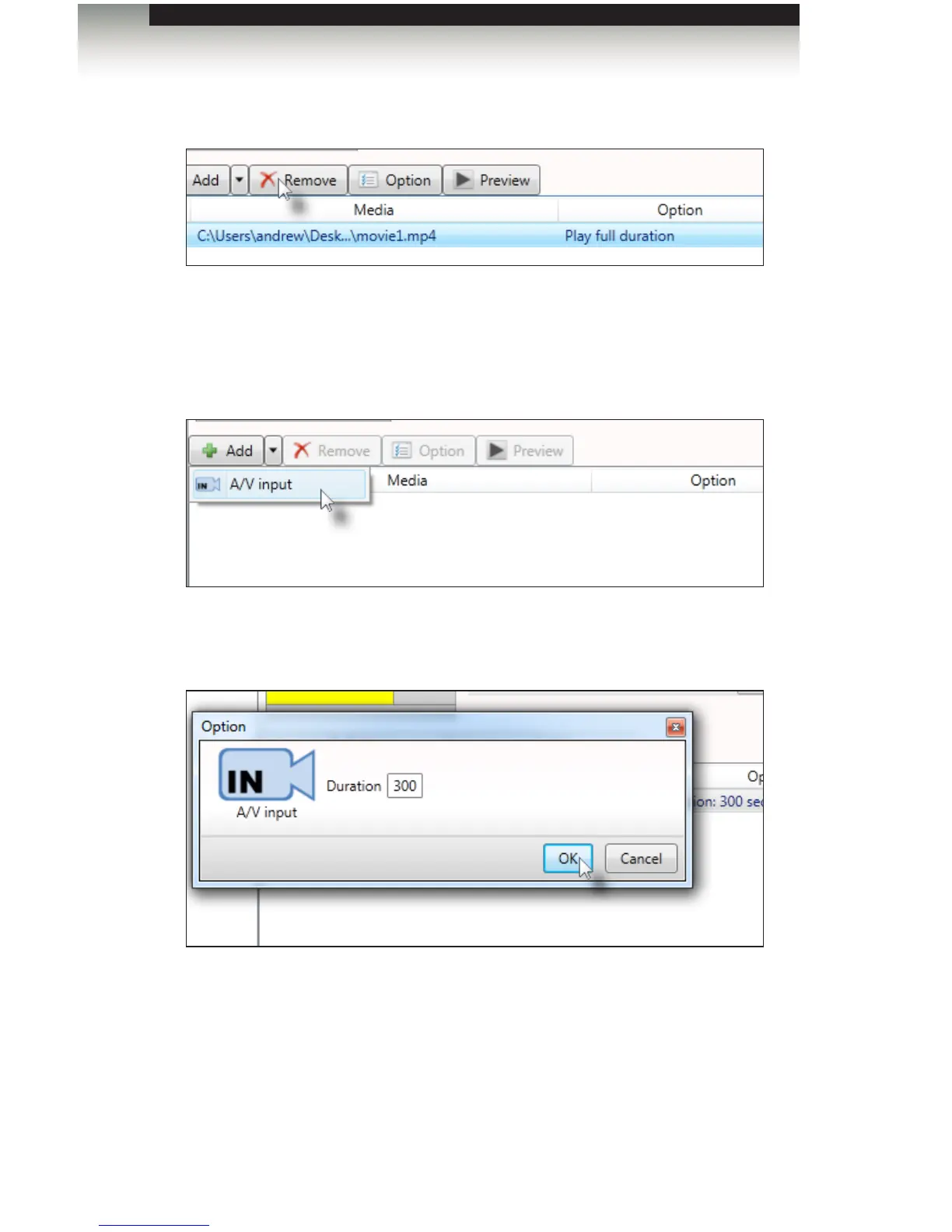 4. Highlight (external audio-visual content) under the Media tab and then click the Option