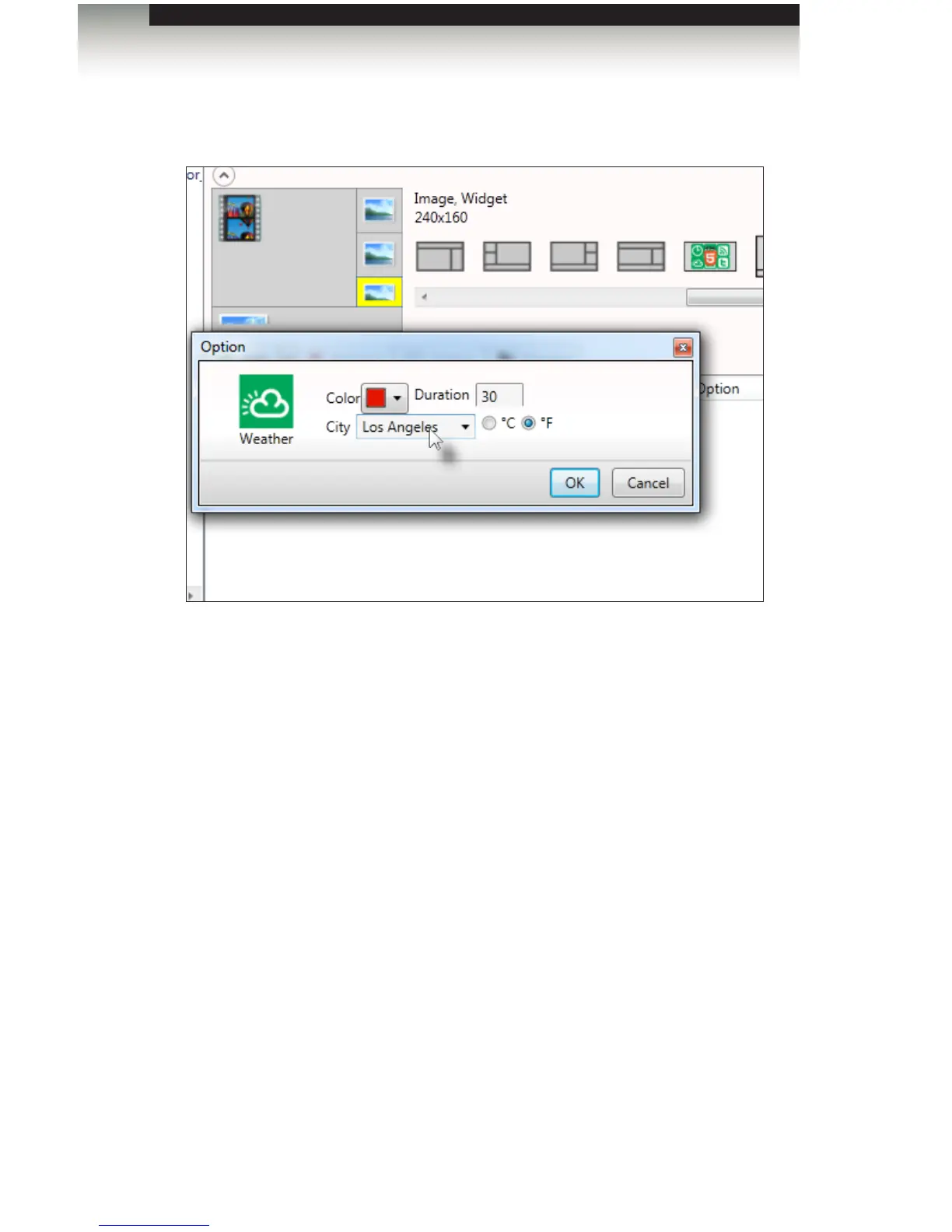 7. Select the lower right-hand corner area and add a weather widget. Set the color to