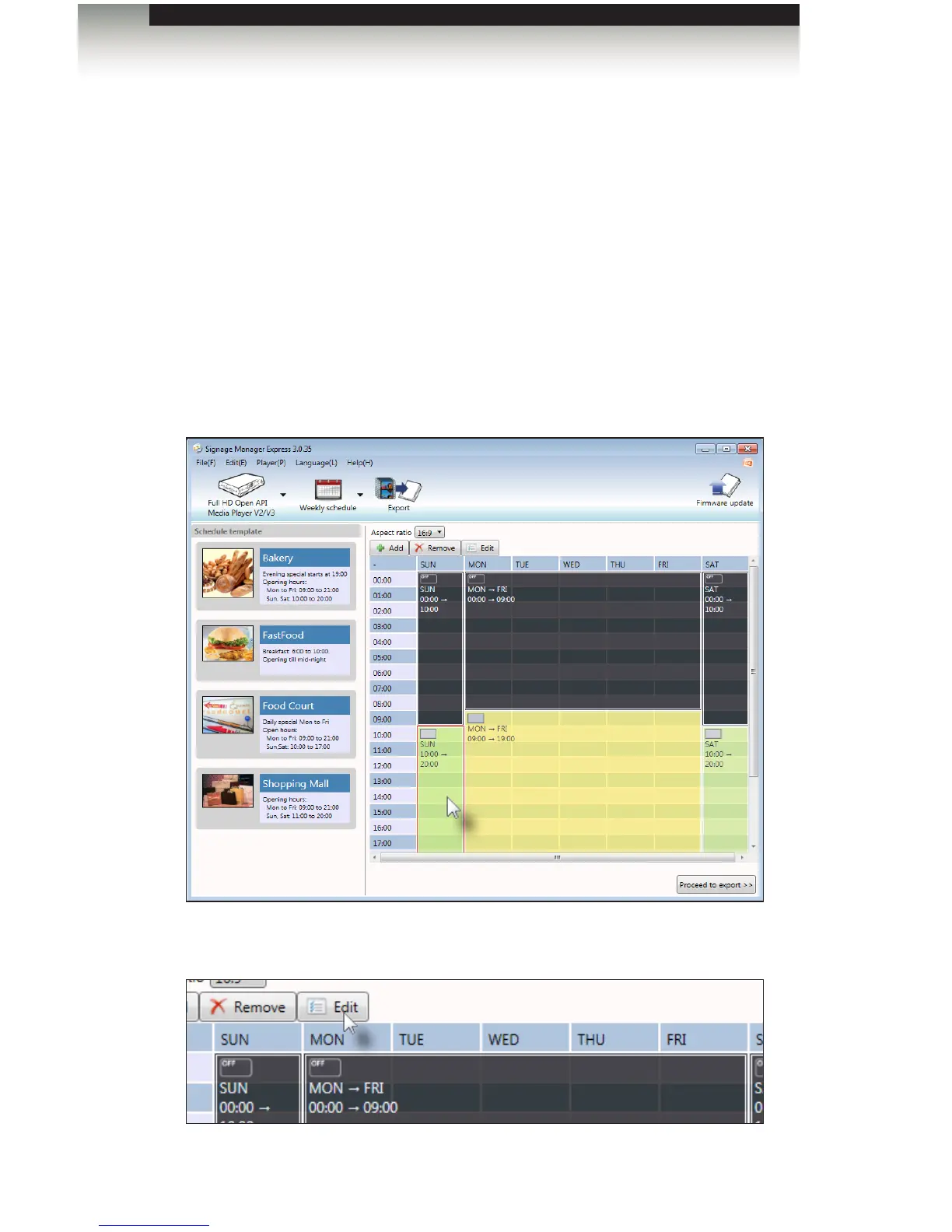 4. Under the Sunday column, click the highlighted area in green. Once this hourly block