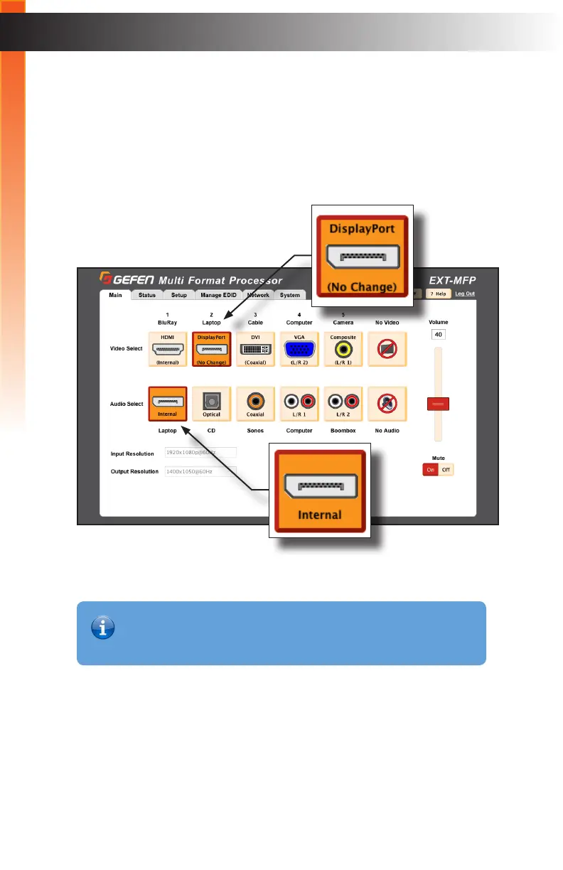 4. The DisplayPort video input is labeled as “(No Change)”. This indicates that the