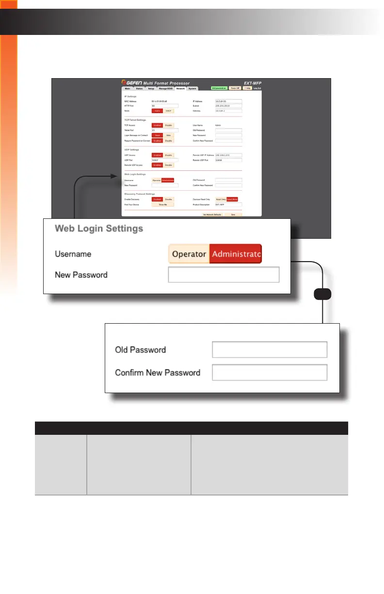 4 Web Login Settings Allows setting and changing of Operator