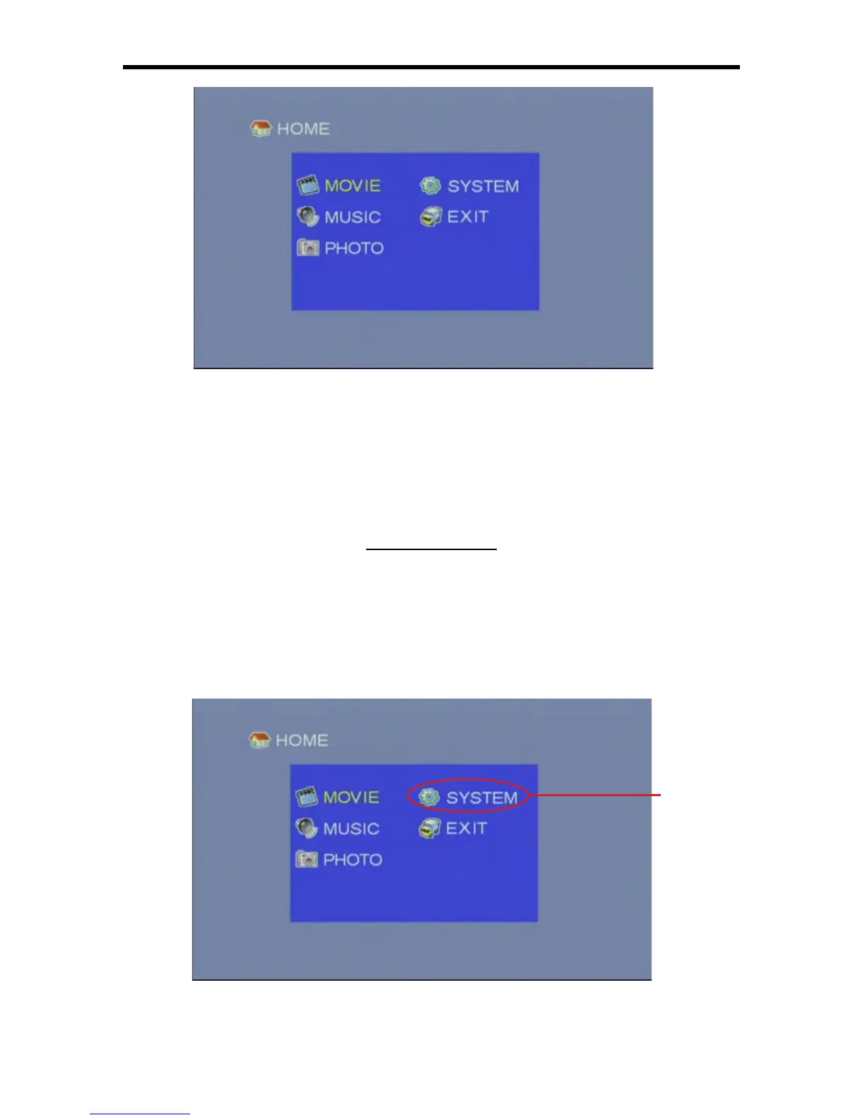 From the 1. Home Screen (1-5), use the included IR remote to navigate to the