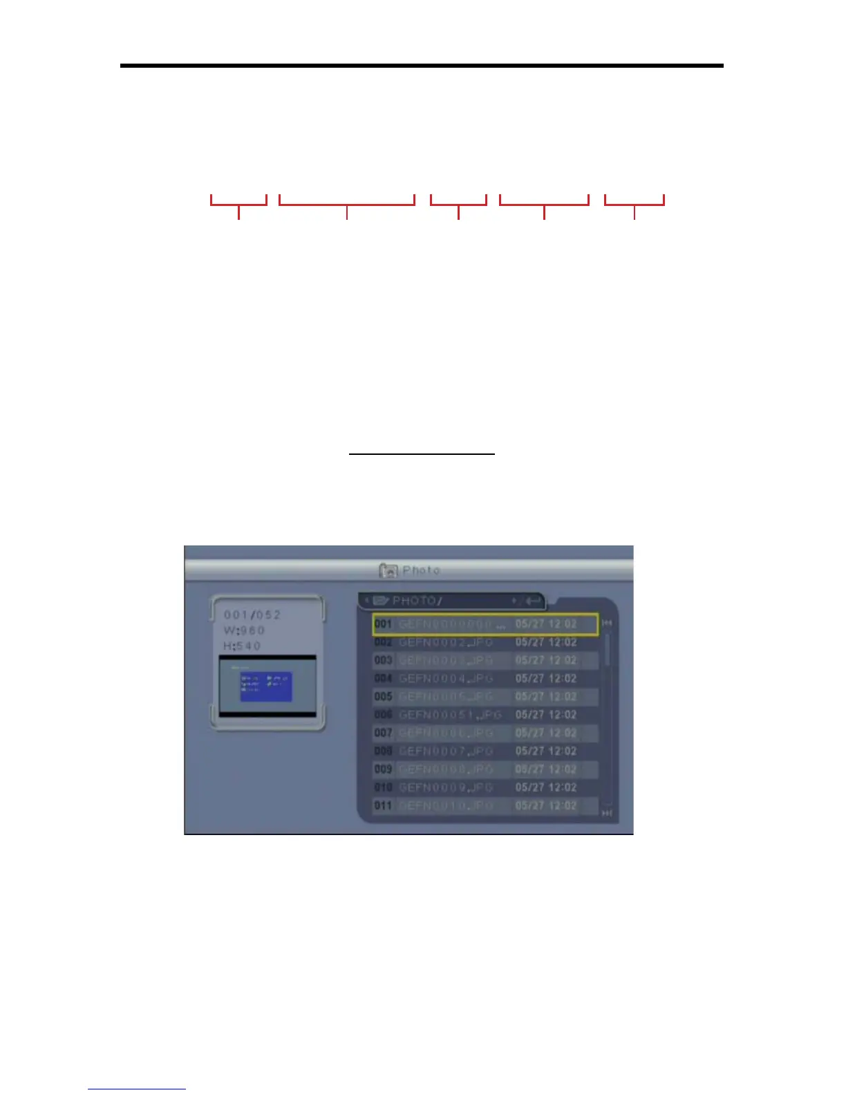 When the OK button is pressed, the selected photo will be displayed and paused.