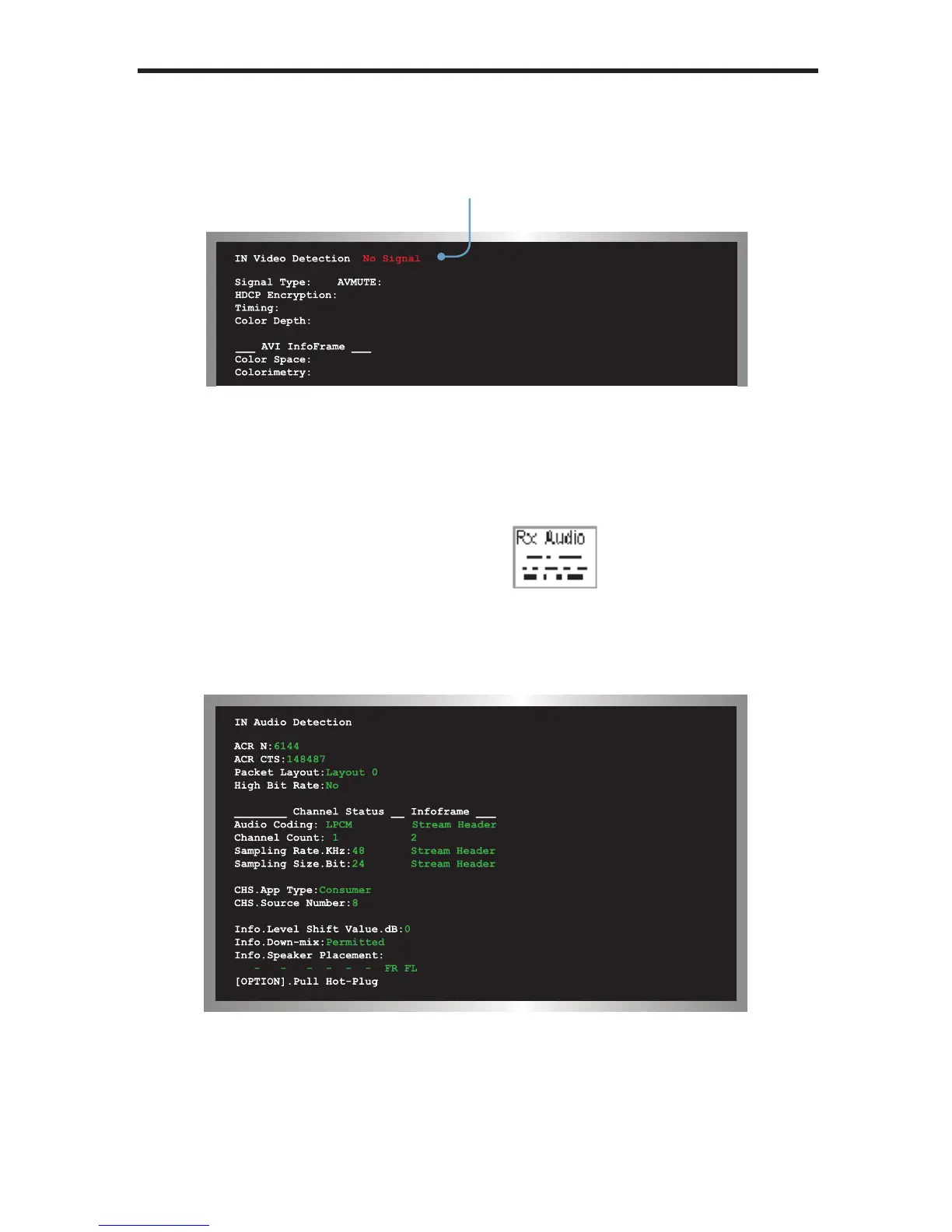 If an audio signal is not detected on the input, the In Audio Detection will indicate No