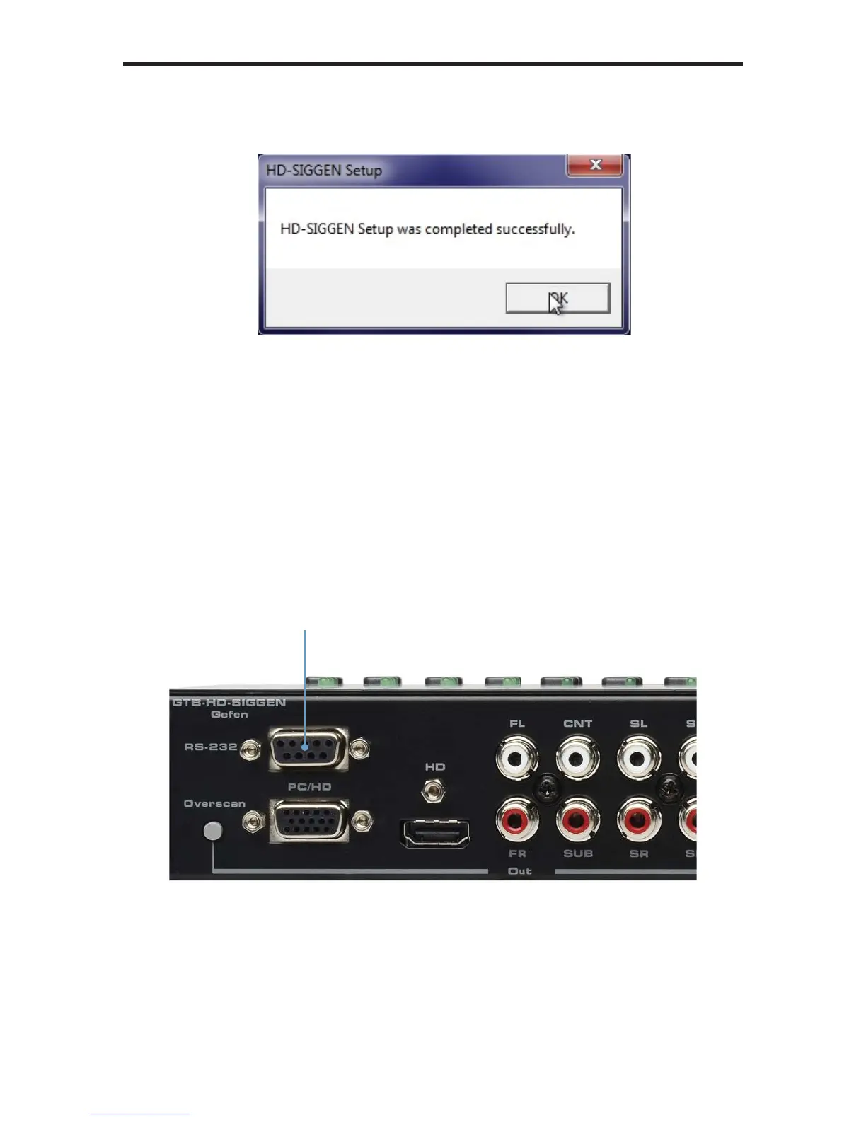 Before launching the HD Pattern Signal Generator software, an RS-232 cable