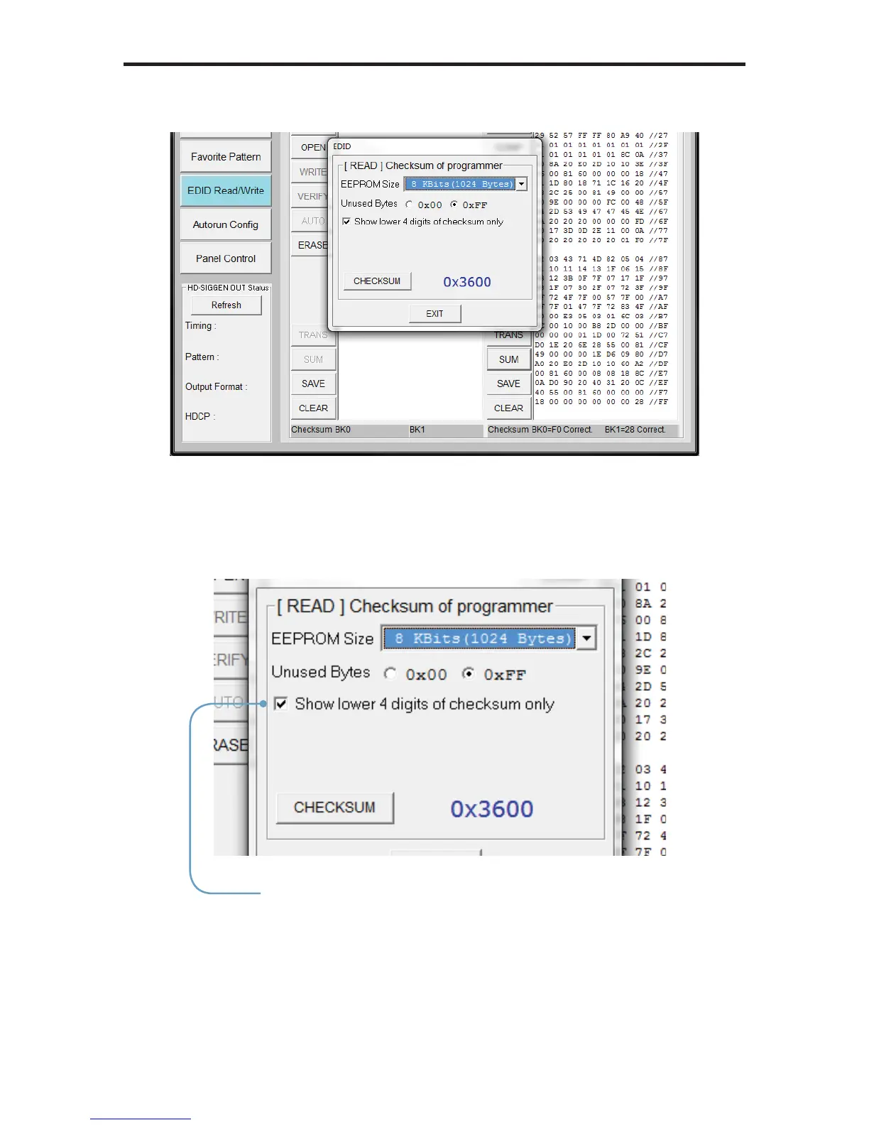 5. Click the CHECKSUM button to generate the EDID checksum.