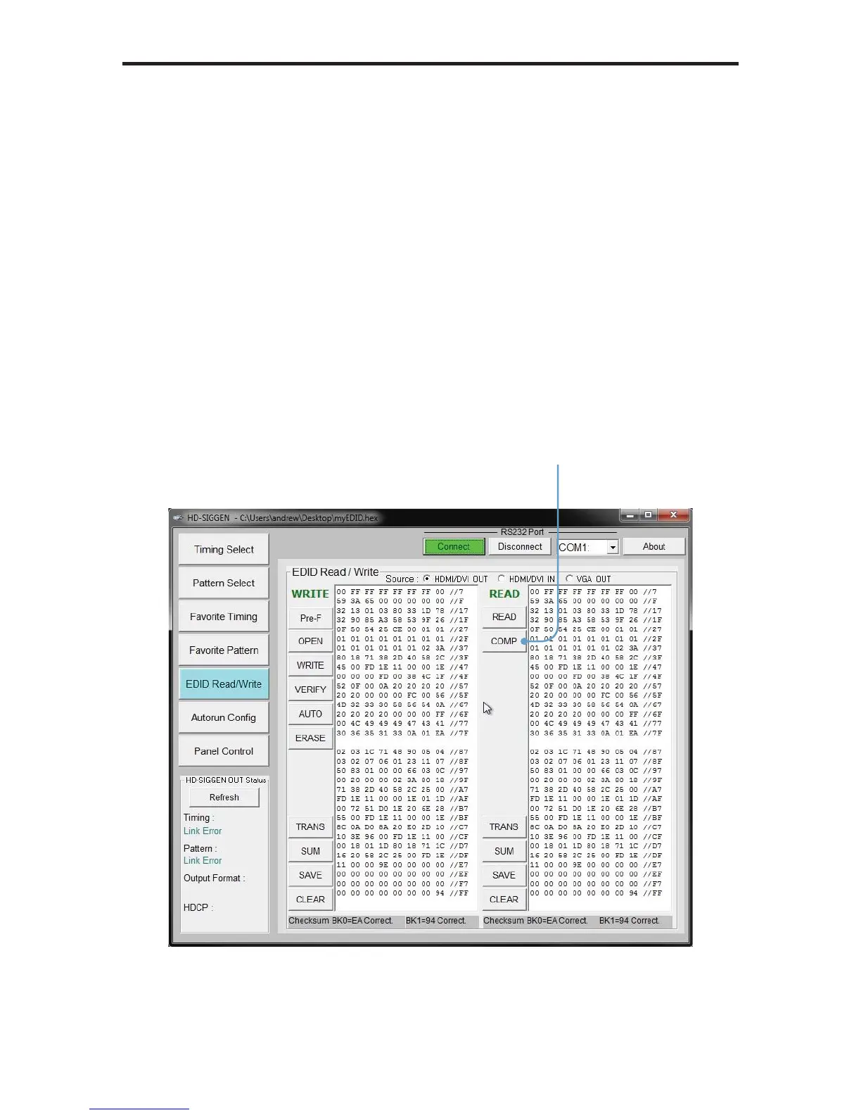1. Read the source EDID by following the instructions starting on page 52.