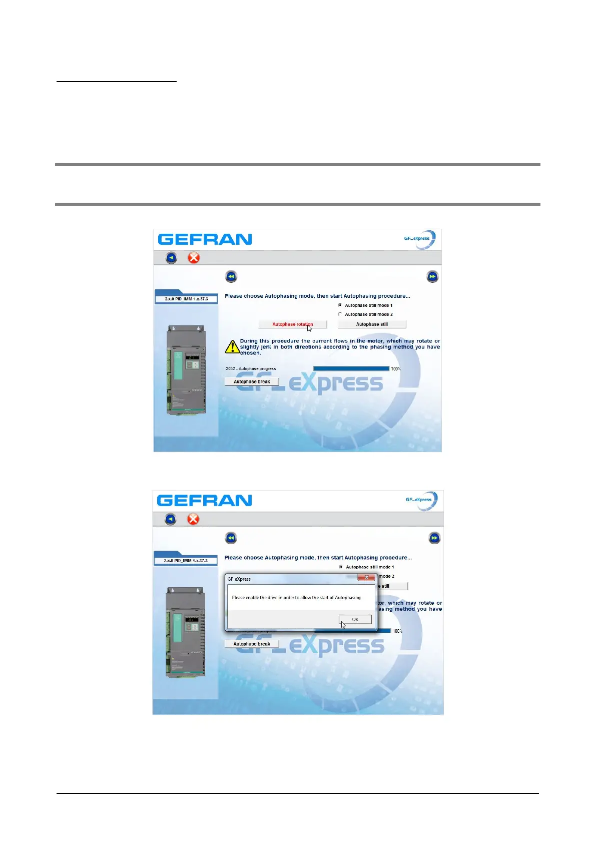 If you press the “Autophase rotation” or “Autophase still” button, the following message appears: