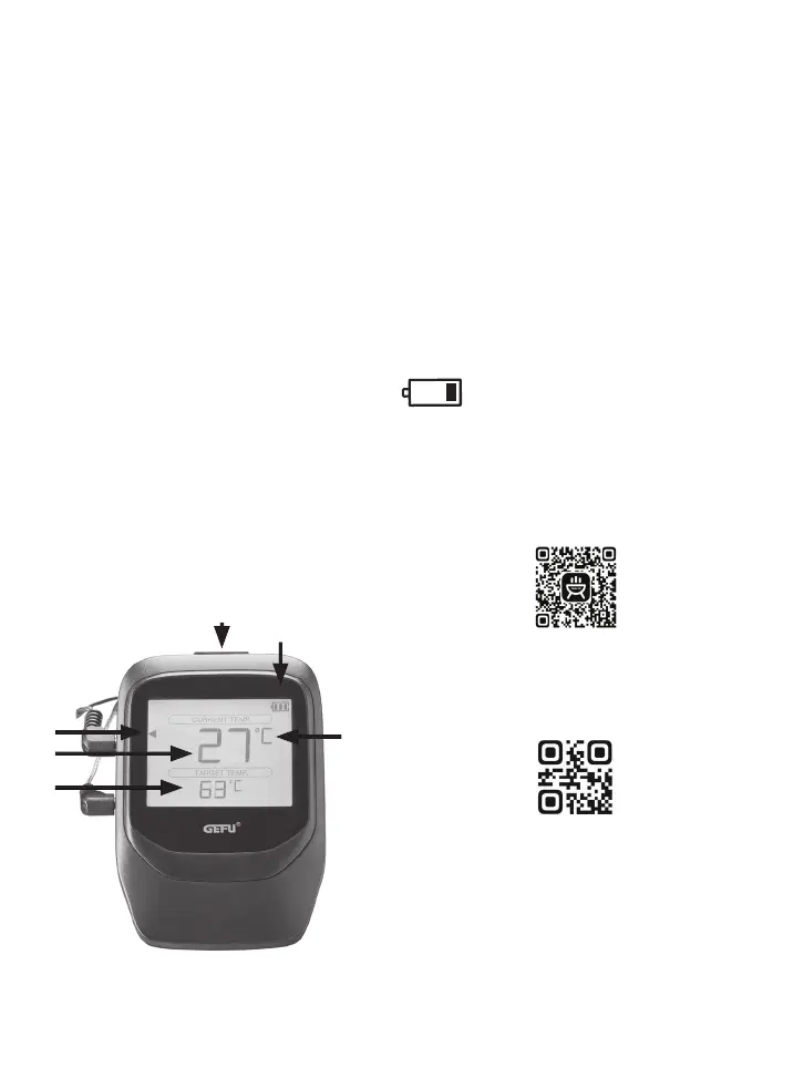 Insira a sonda no alimento a ser grelhado; a ponta da sonda