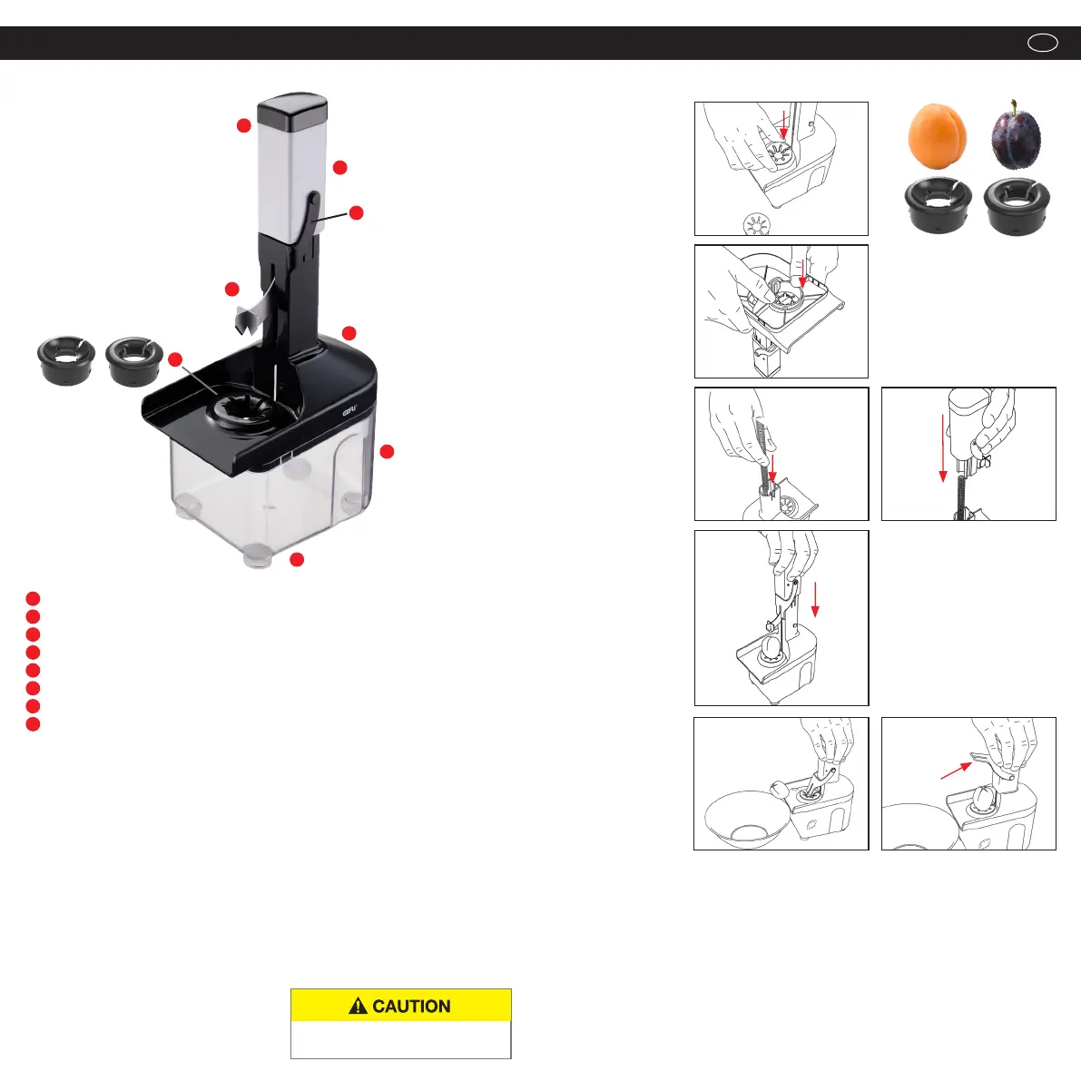 За употреба на уреда за вадене на костилки на сливи същият трябва да е поставен на суха и стабилна