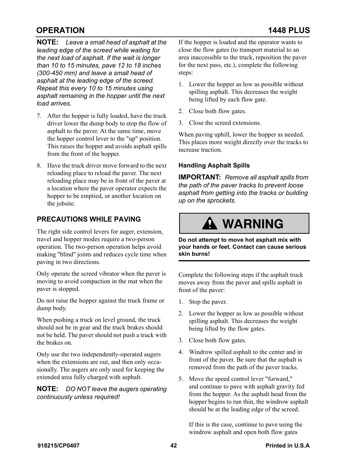 front of the paver. Be sure that the asphalt is