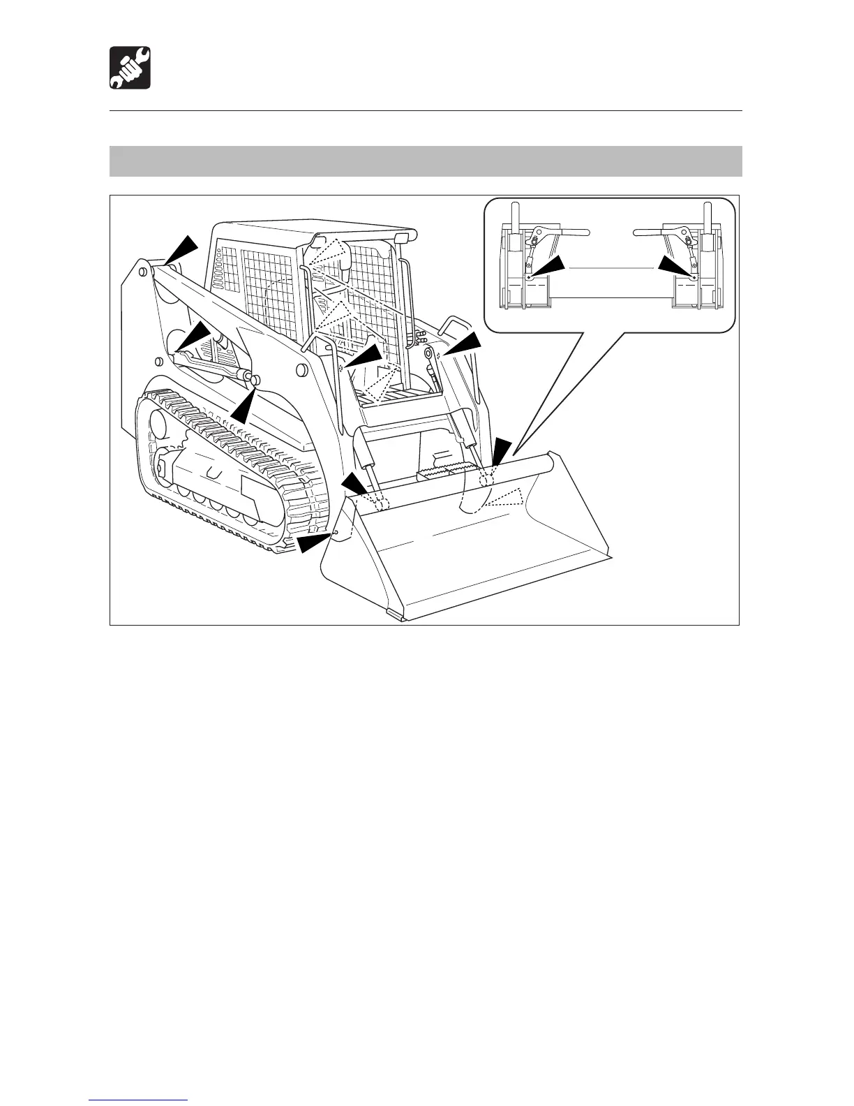 1. Set the machine to the lubrication position shown in the diagram above, ground the bucket,