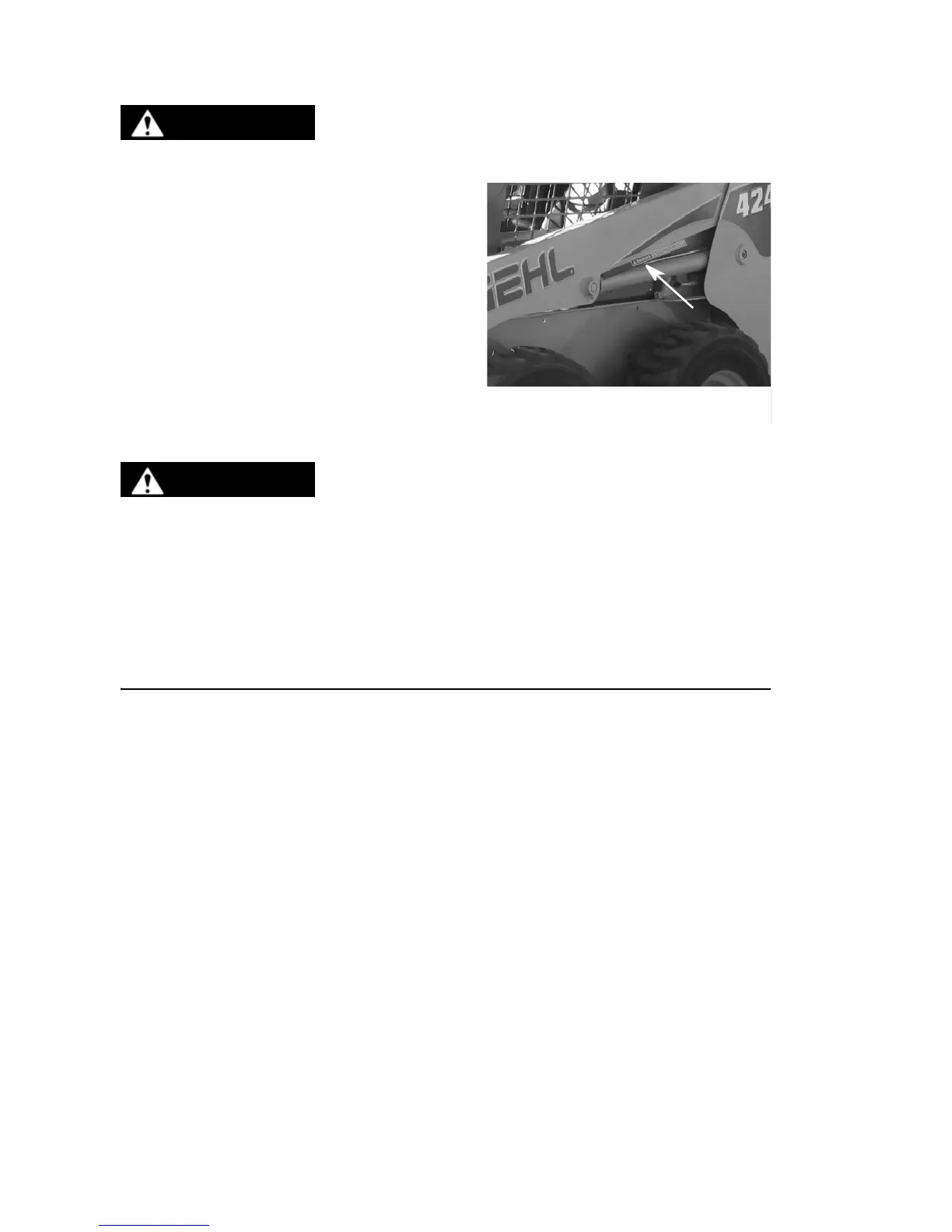 3. Before leaving the operator’s compartment, be sure that the lift arm is being