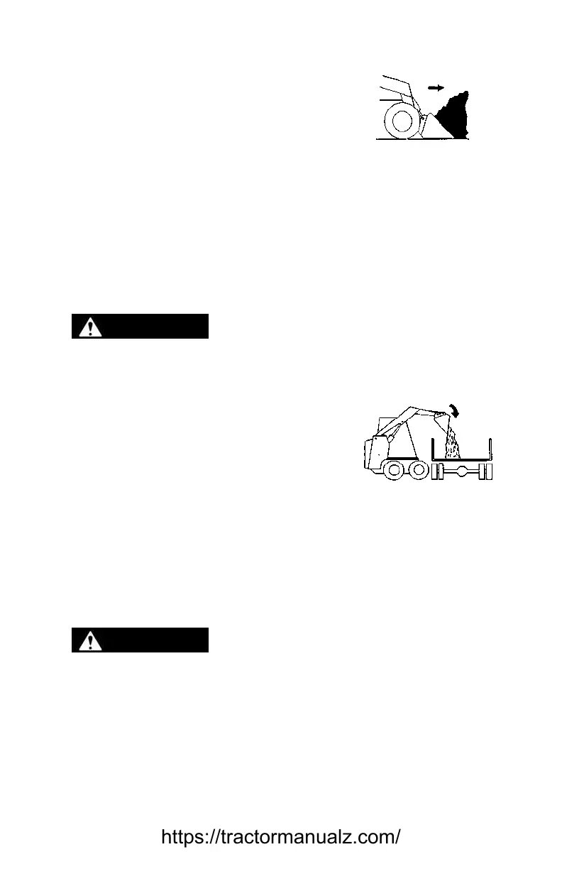 ment. Tilt the bucket forward and raise the lift arm to dump the material. Dump