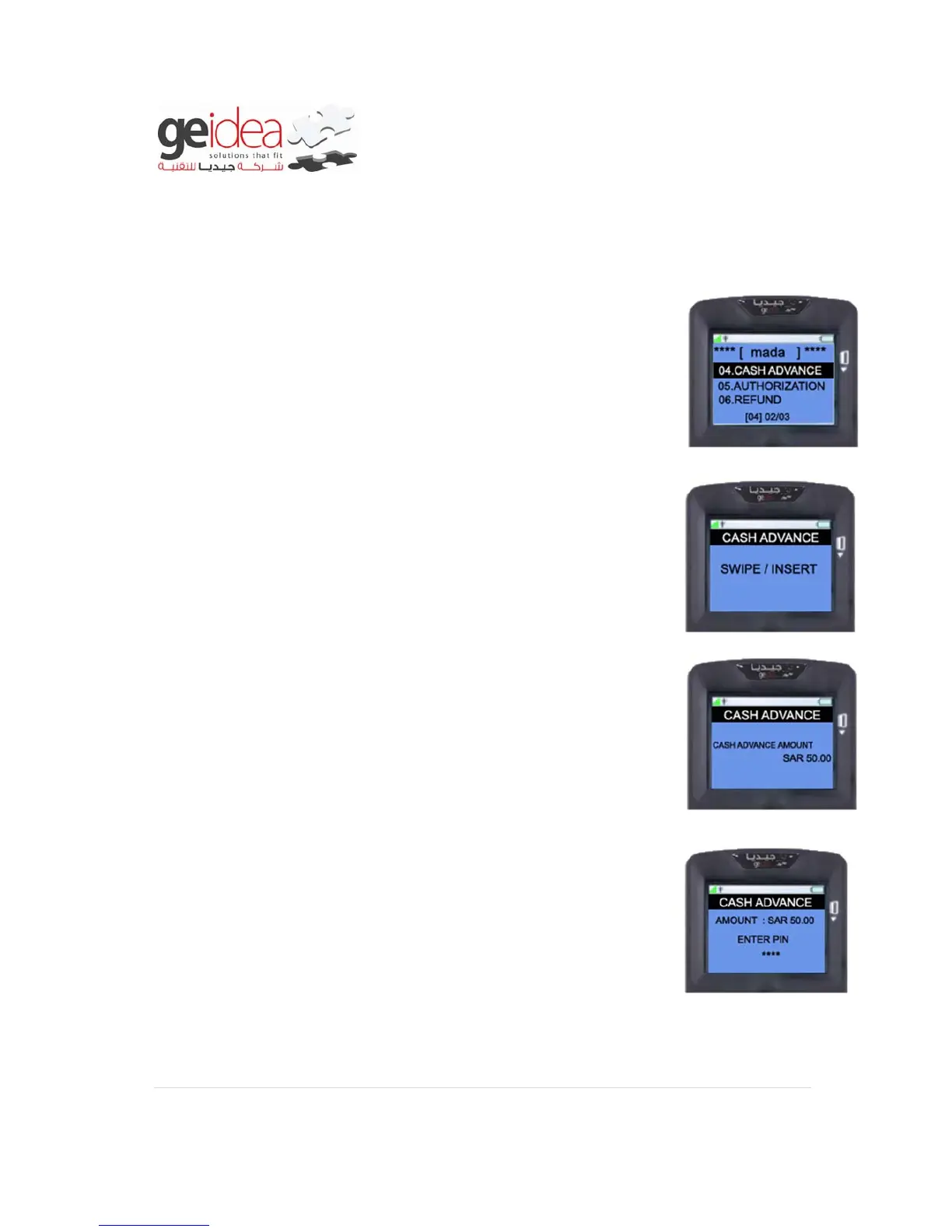 1. Select “CASH ADVANCE” from mada menu.
