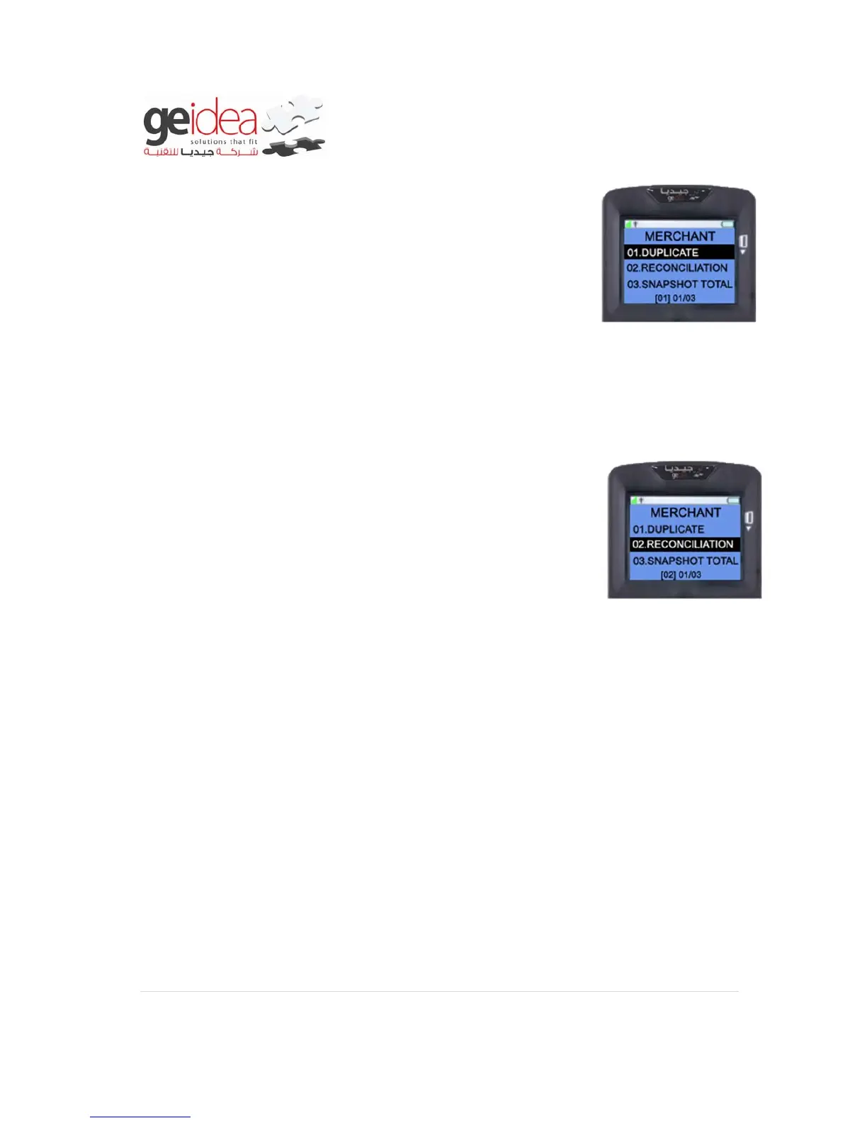 1. In Merchant MenuRECONCILITIONENTER KEY.