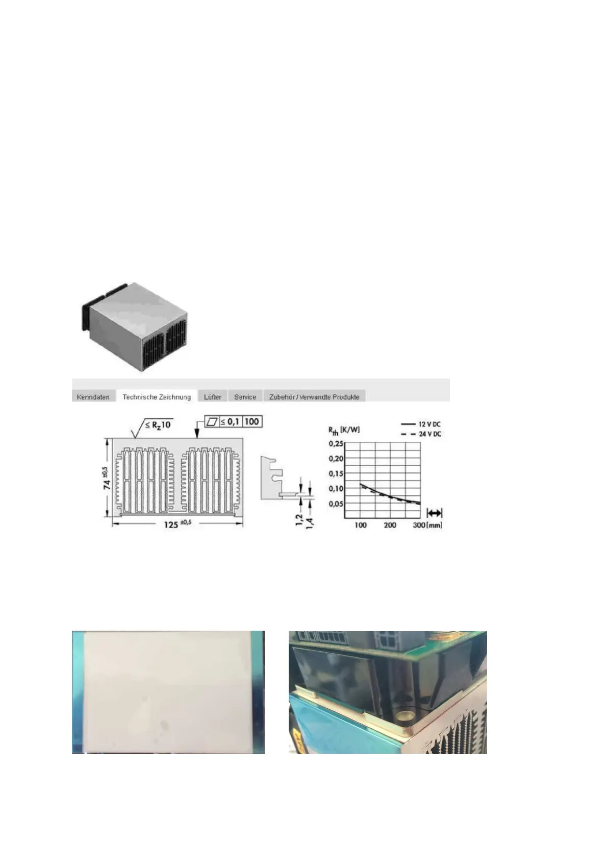 Das Transistormodul muss mit vier M6 Schrauben auf einen Kühlkörper, mit folgenden Eigenschaften