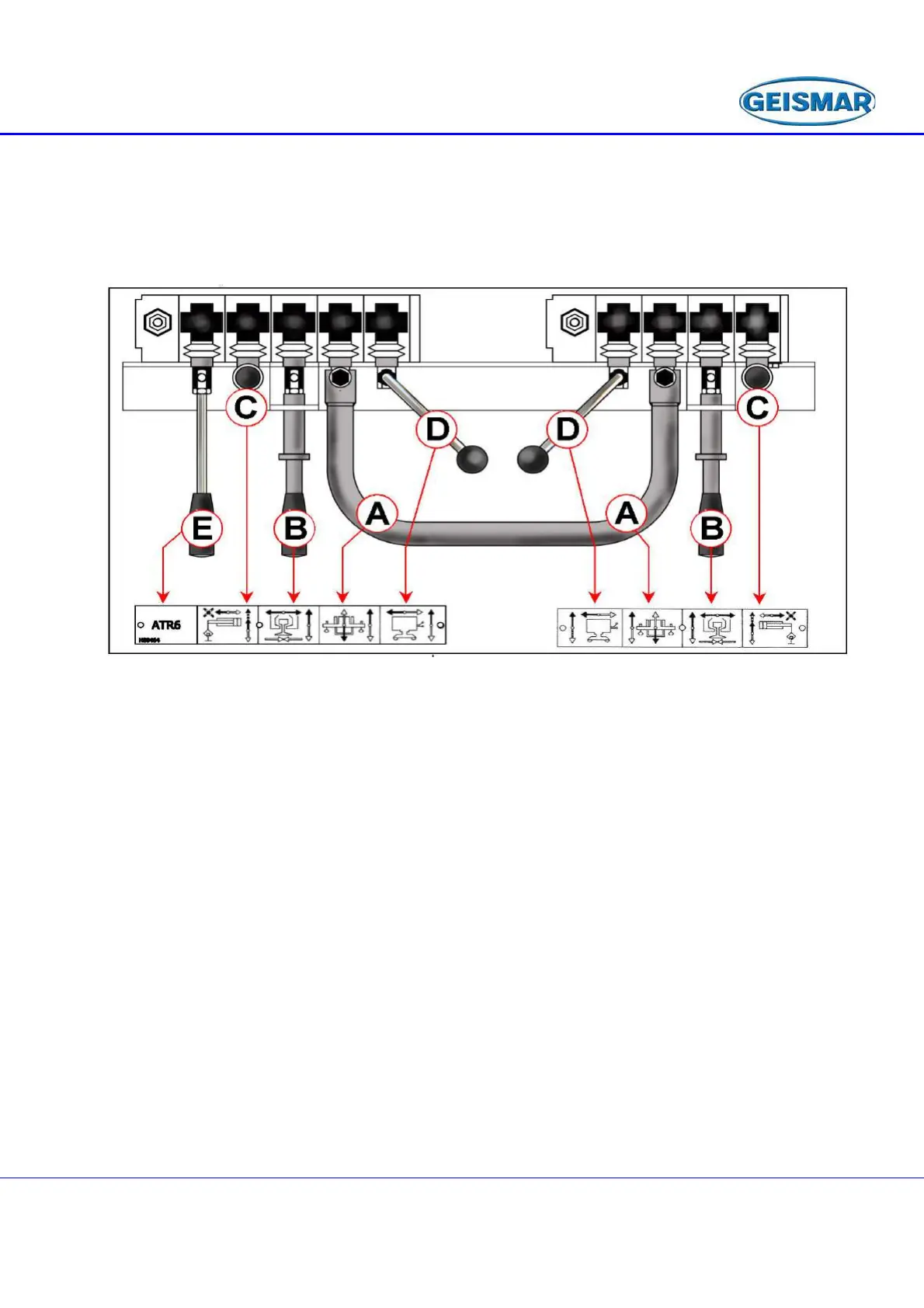 The lever on the extreme left (E) is used to control the rail puller (6t force) which