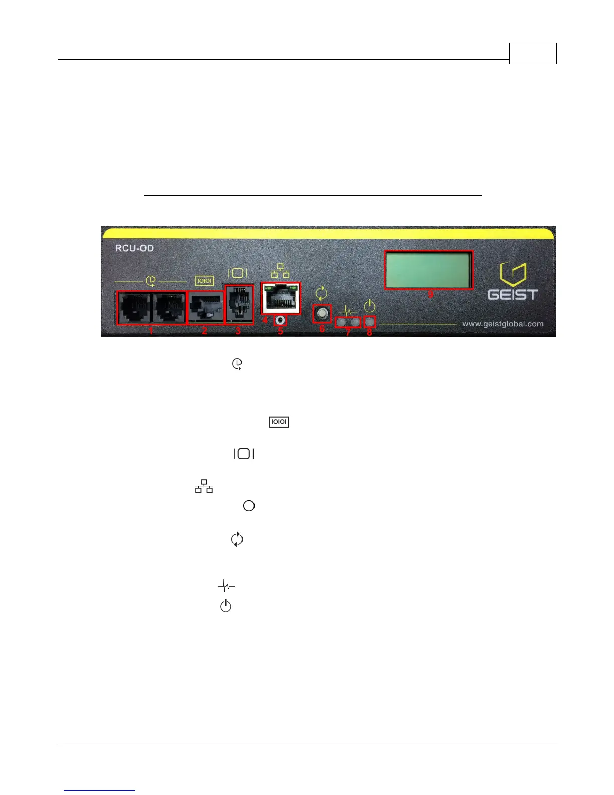 1. Remote Sensor Port ( ): Two RJ12 ports for connecting Geist plug-and-play remote
