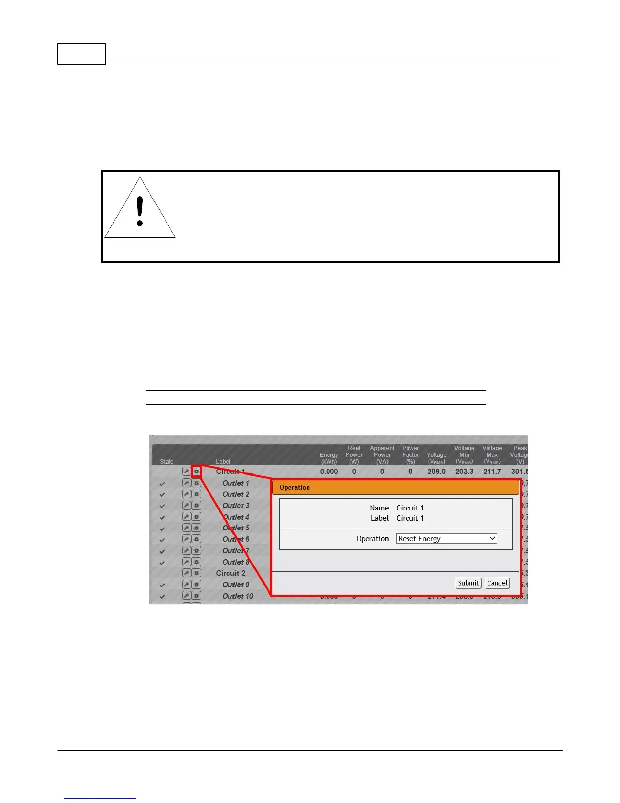 1. Click the Operation icon. For Phase/Circuit operation only the Reset Energy (kWh)