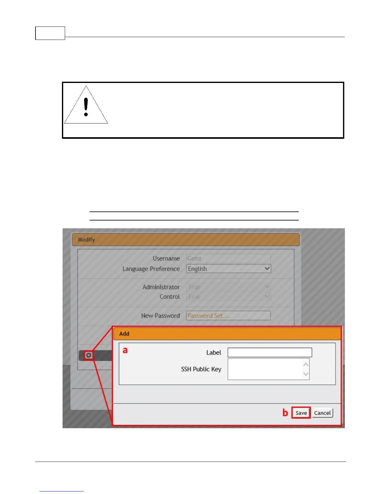 3. Click the add icon to add a user specific SSH Public Key
