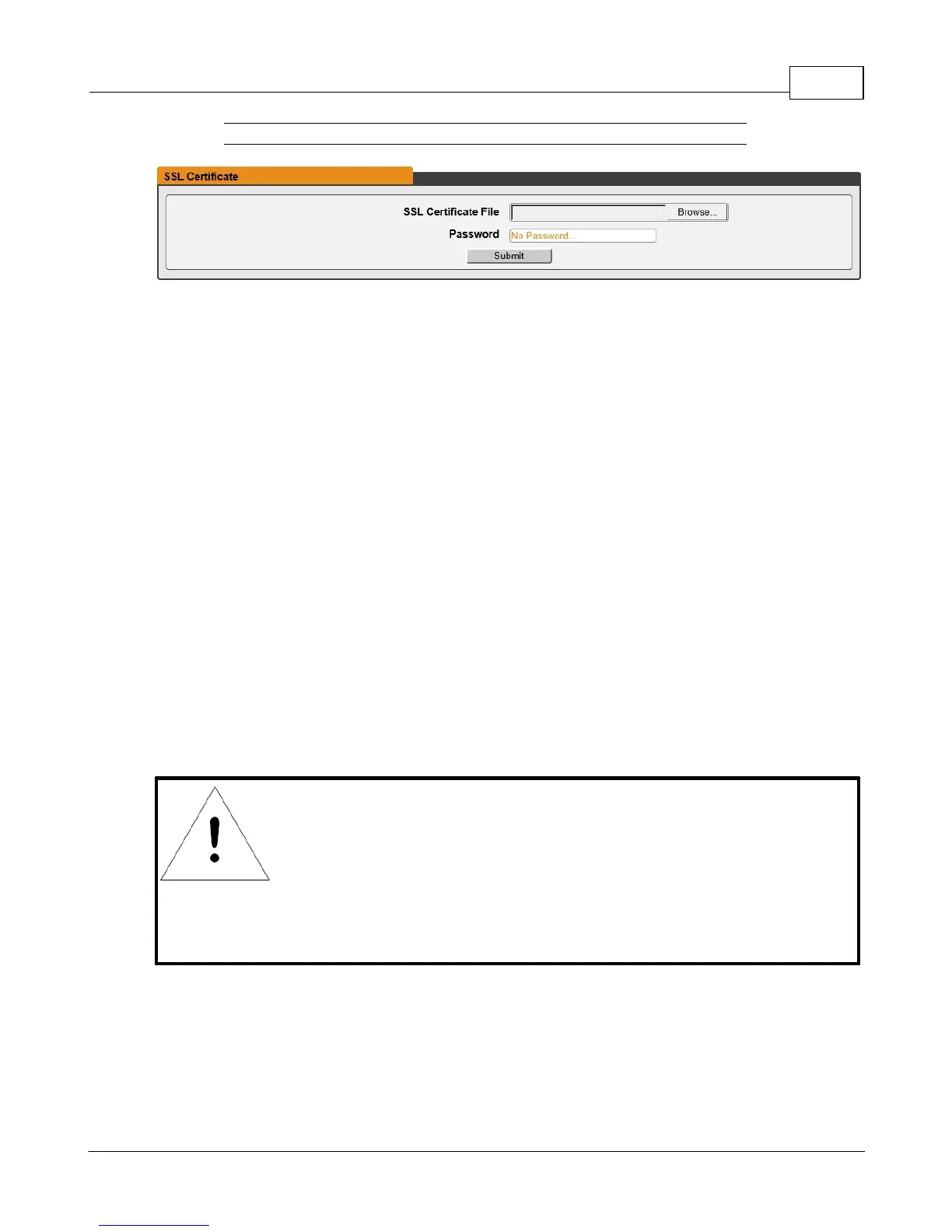 · SSL Certificate: Allows you to upload your own signed SSL Certificate file to replace