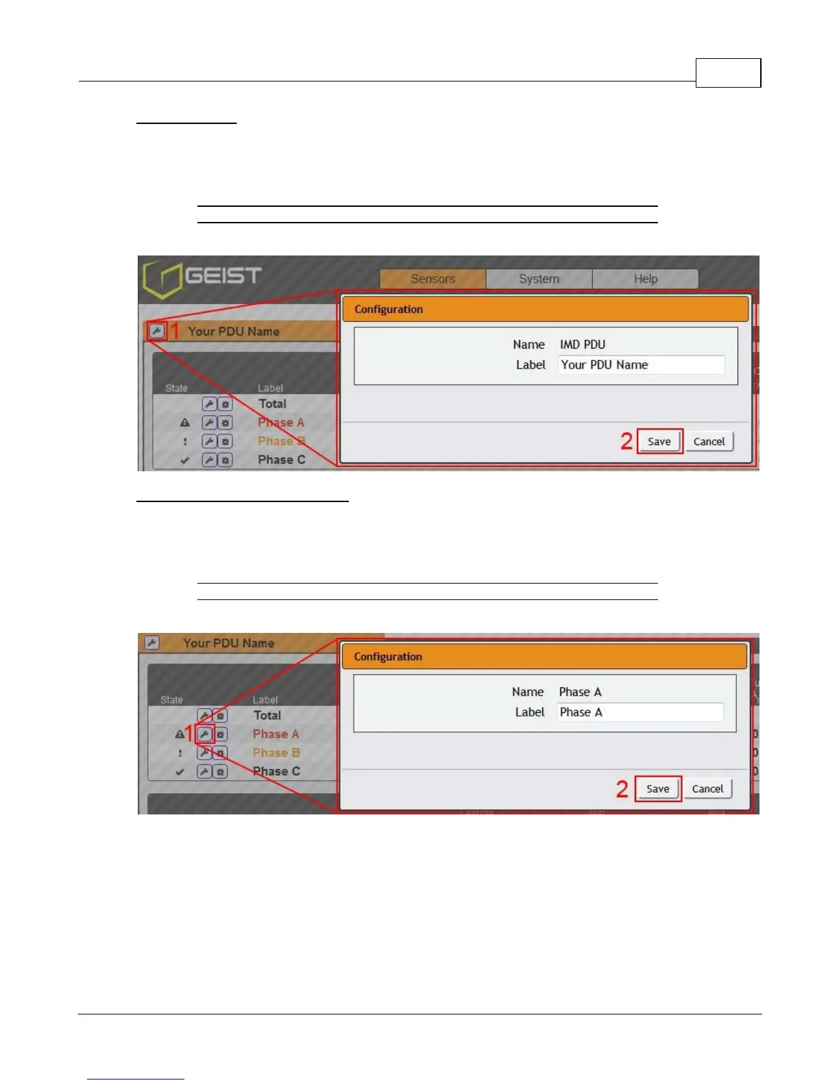 1. Click the desired Configuration icon, and change the device's Label. (Name is the PDU's factory