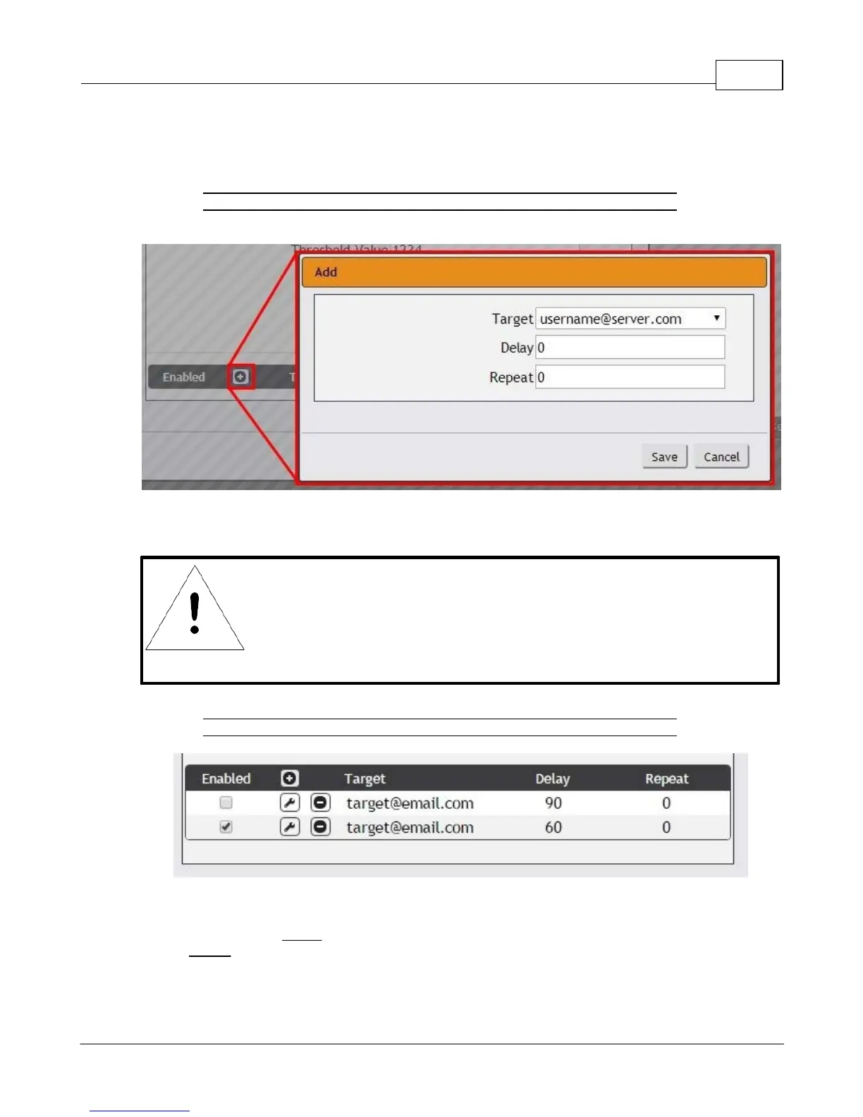 Note: Target Delays and Repeats are shared across all alarms. If multiple