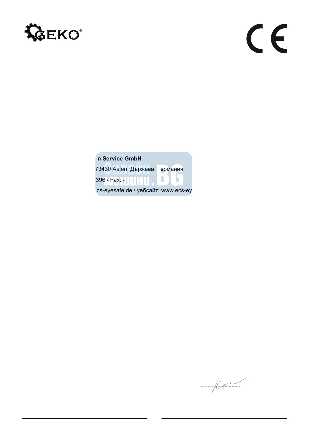 Тази ЕО декларация за съответствие губи своята валидност, ако продуктът бъде
