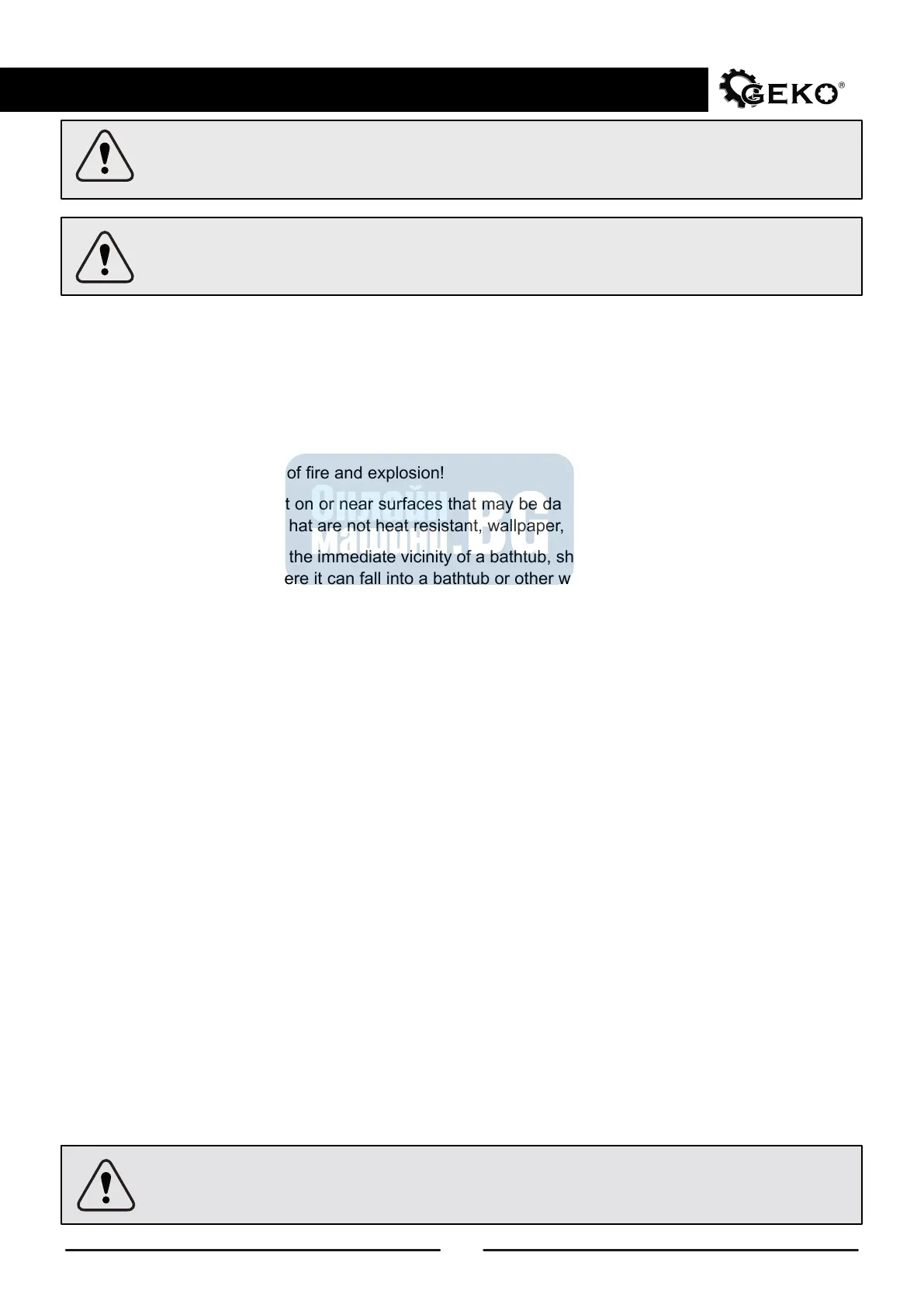 – Do not use the heater in the immediate vicinity of a bathtub, shower or swimming pool. Never place