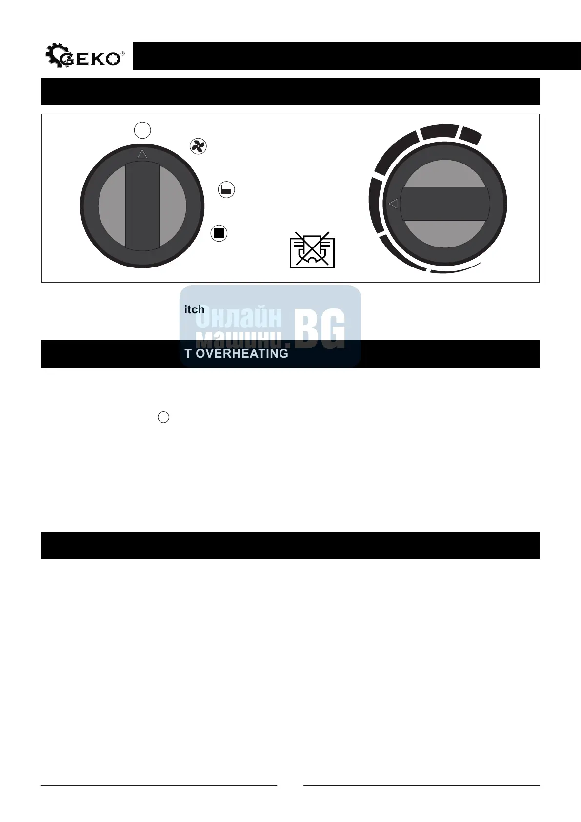 In the event of overheating of the device, the heater protection switch will automatically turn o the