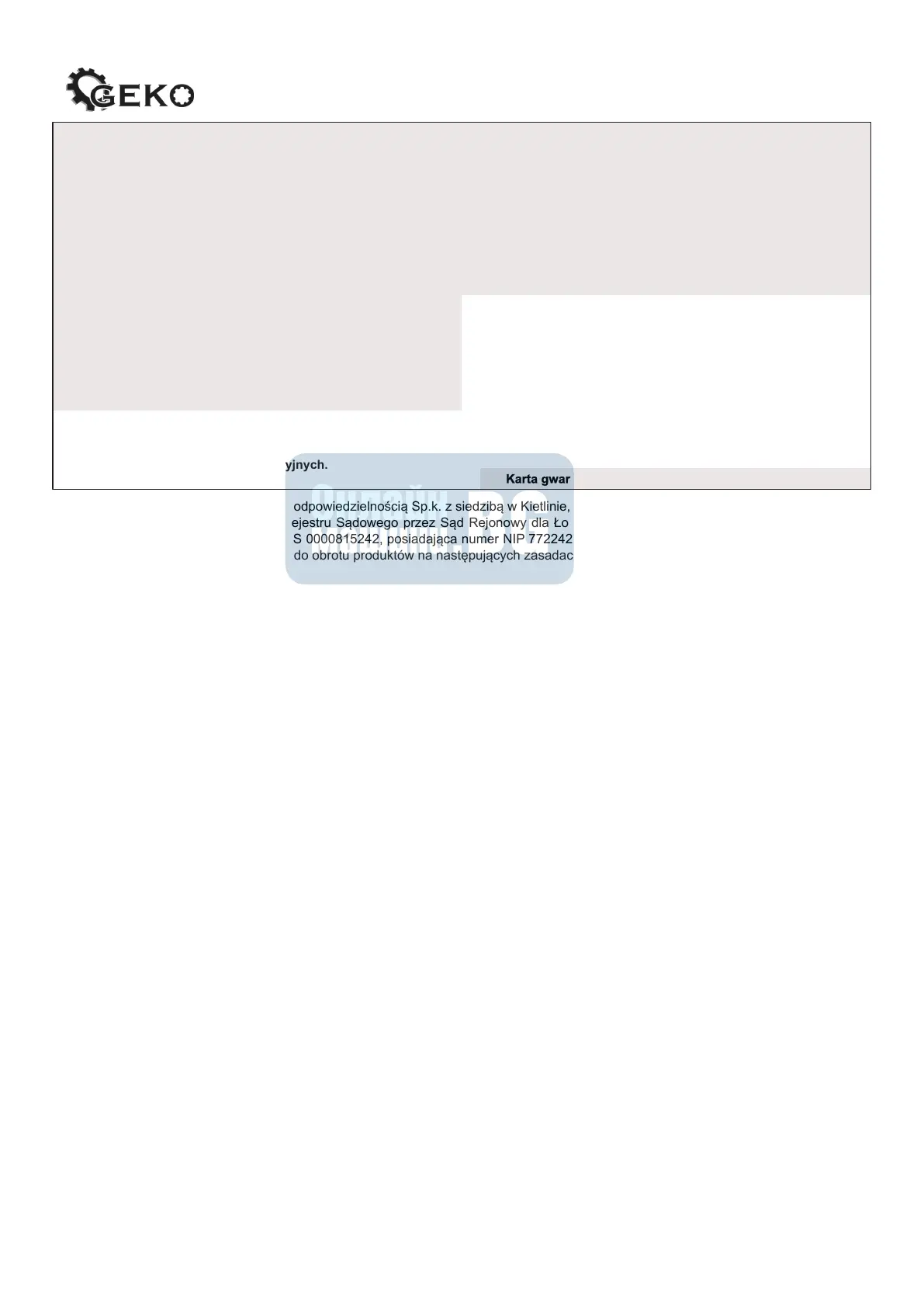 Gwarant GEKO Spółka z ograniczoną odpowiedzielnością Sp.k. z siedzibą w Kietlinie, ul. Spacerowa 3, 97-500 Radomsko, wpisana do